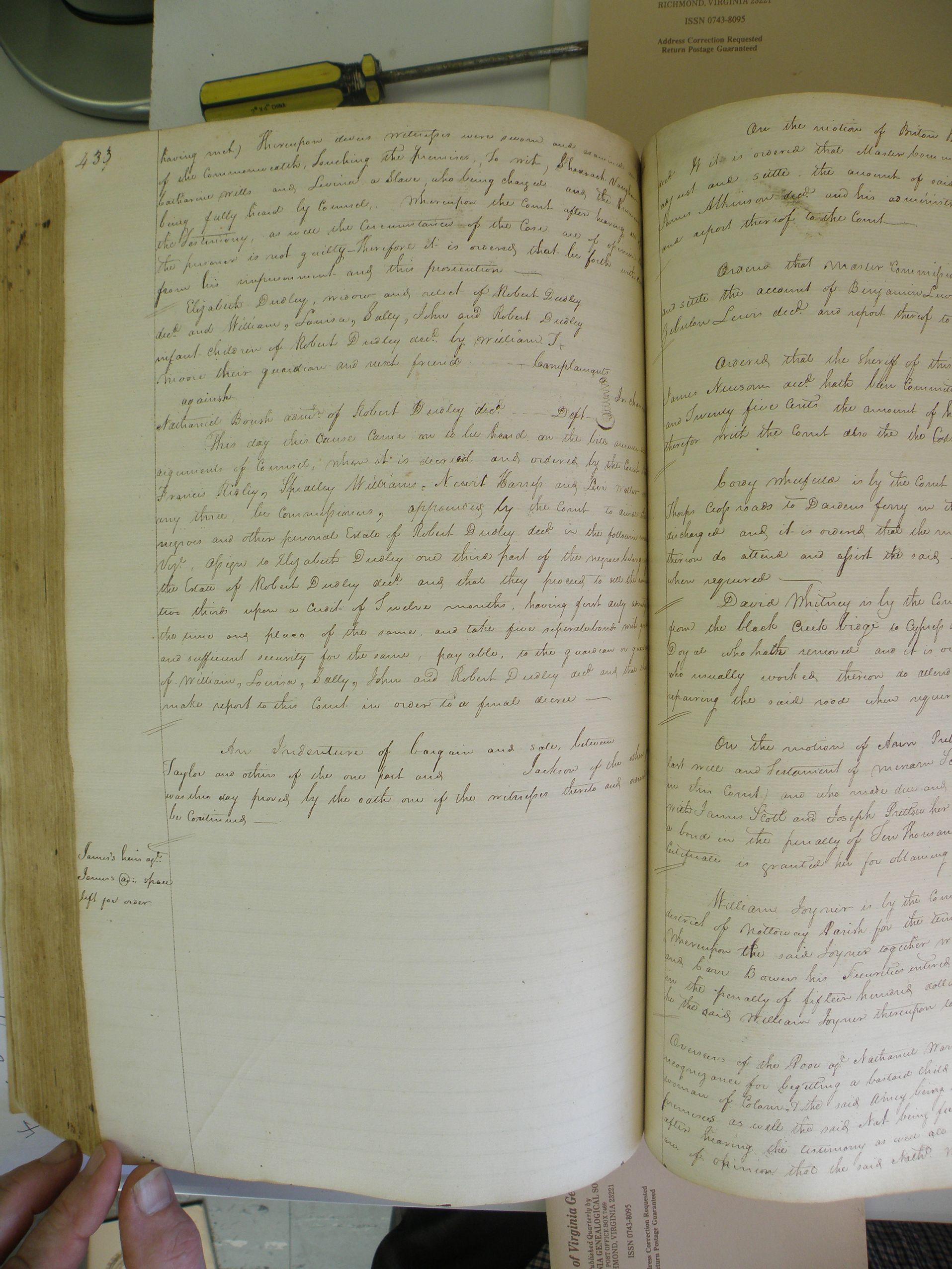 Showing /Court Minute Books/Court Minute Book 1816-1819/Pg 433.jpg