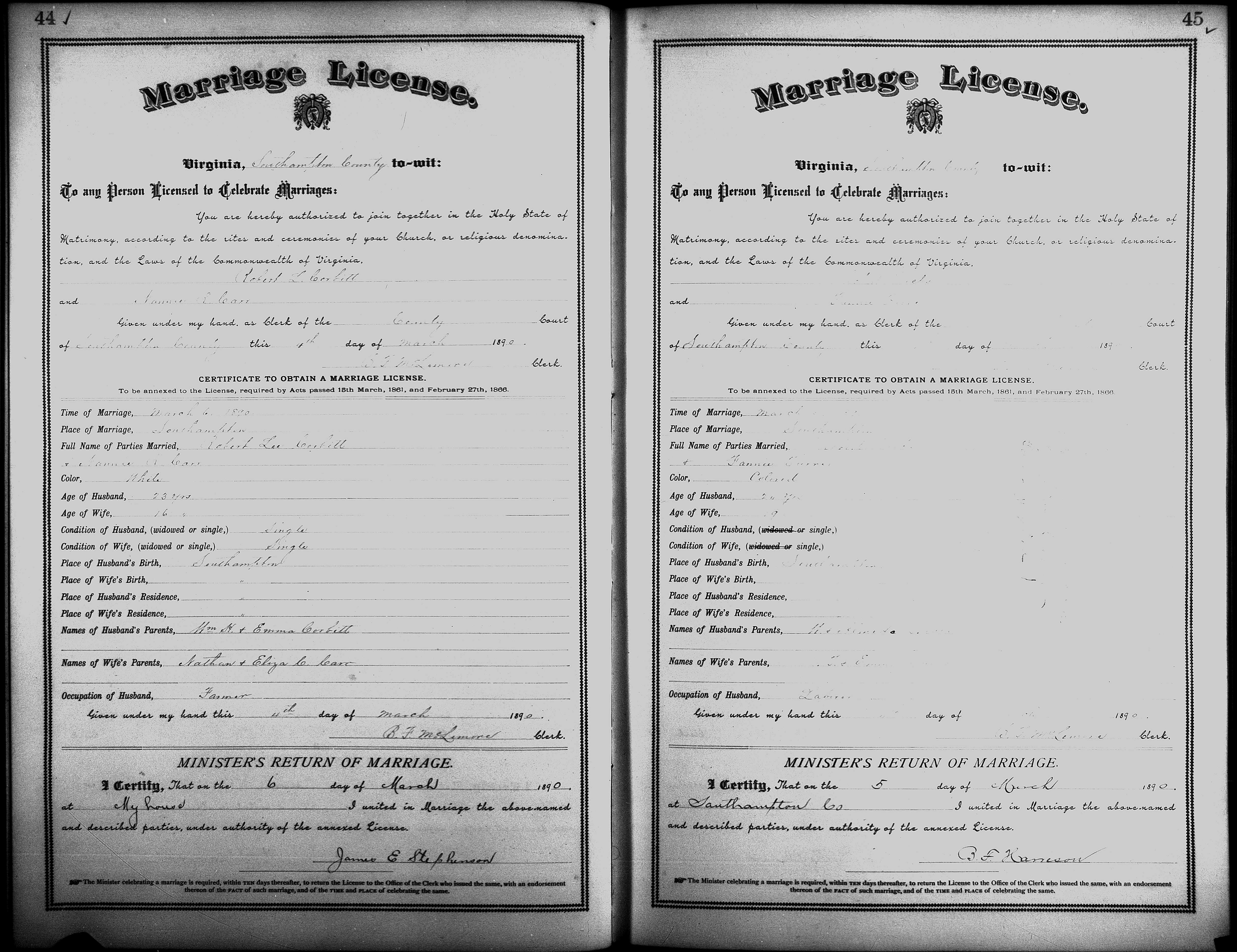 Showing /Marriage Books/Marriage Book 7 1890-1893/Pg 045.jpg