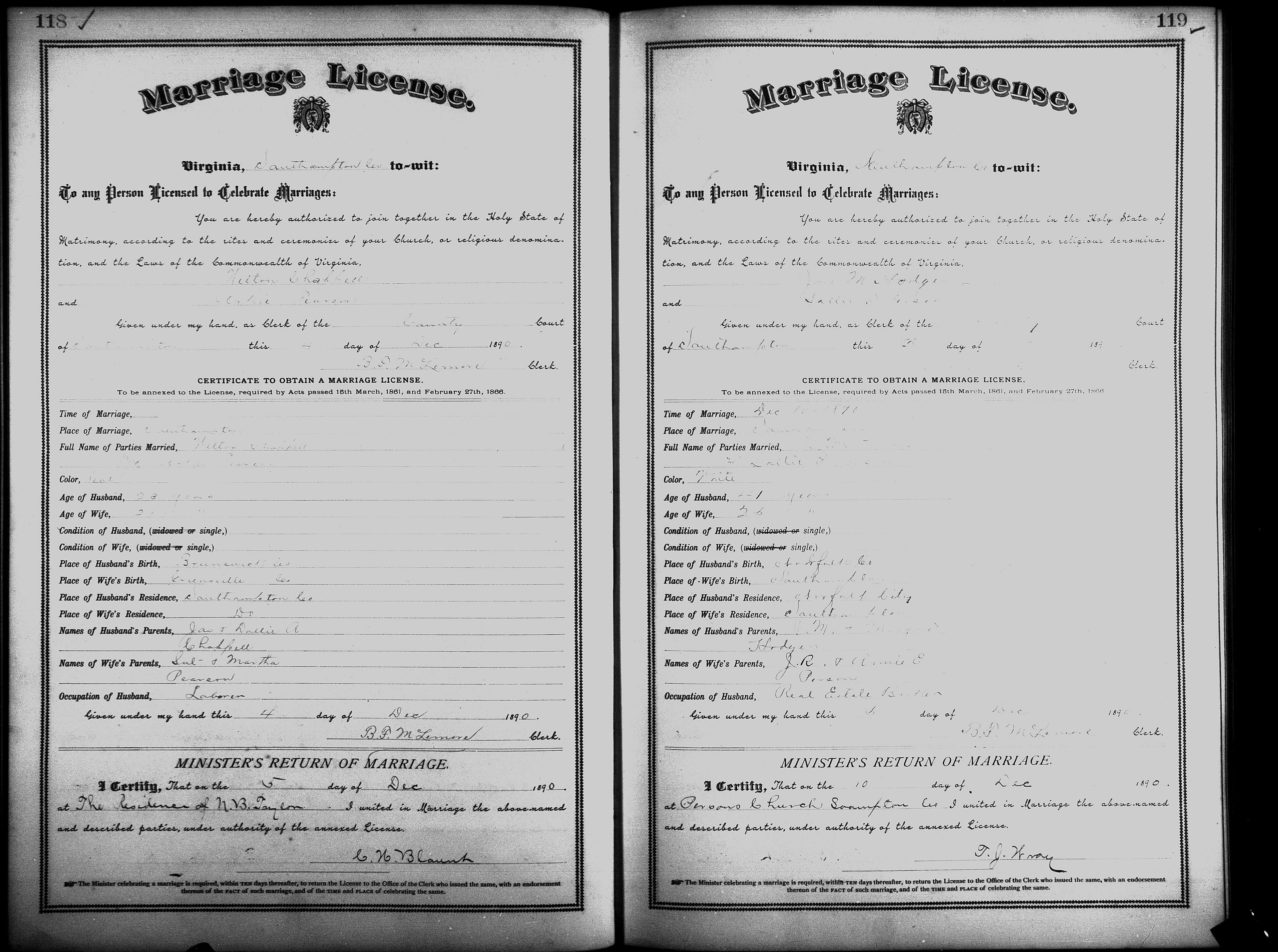 Showing /Marriage Books/Marriage Book 7 1890-1893/Pg 118.jpg