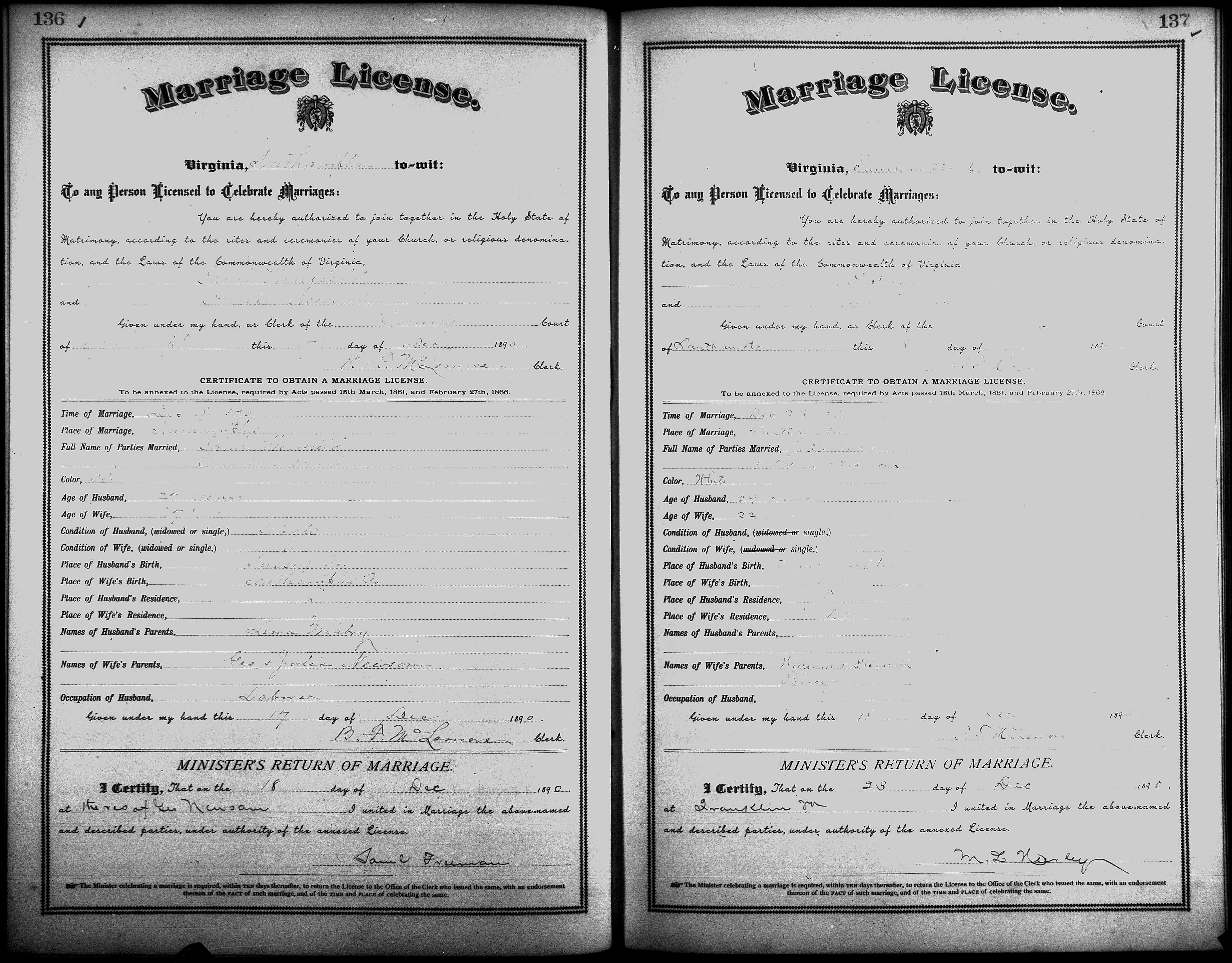 Showing /Marriage Books/Marriage Book 7 1890-1893/Pg 137.jpg