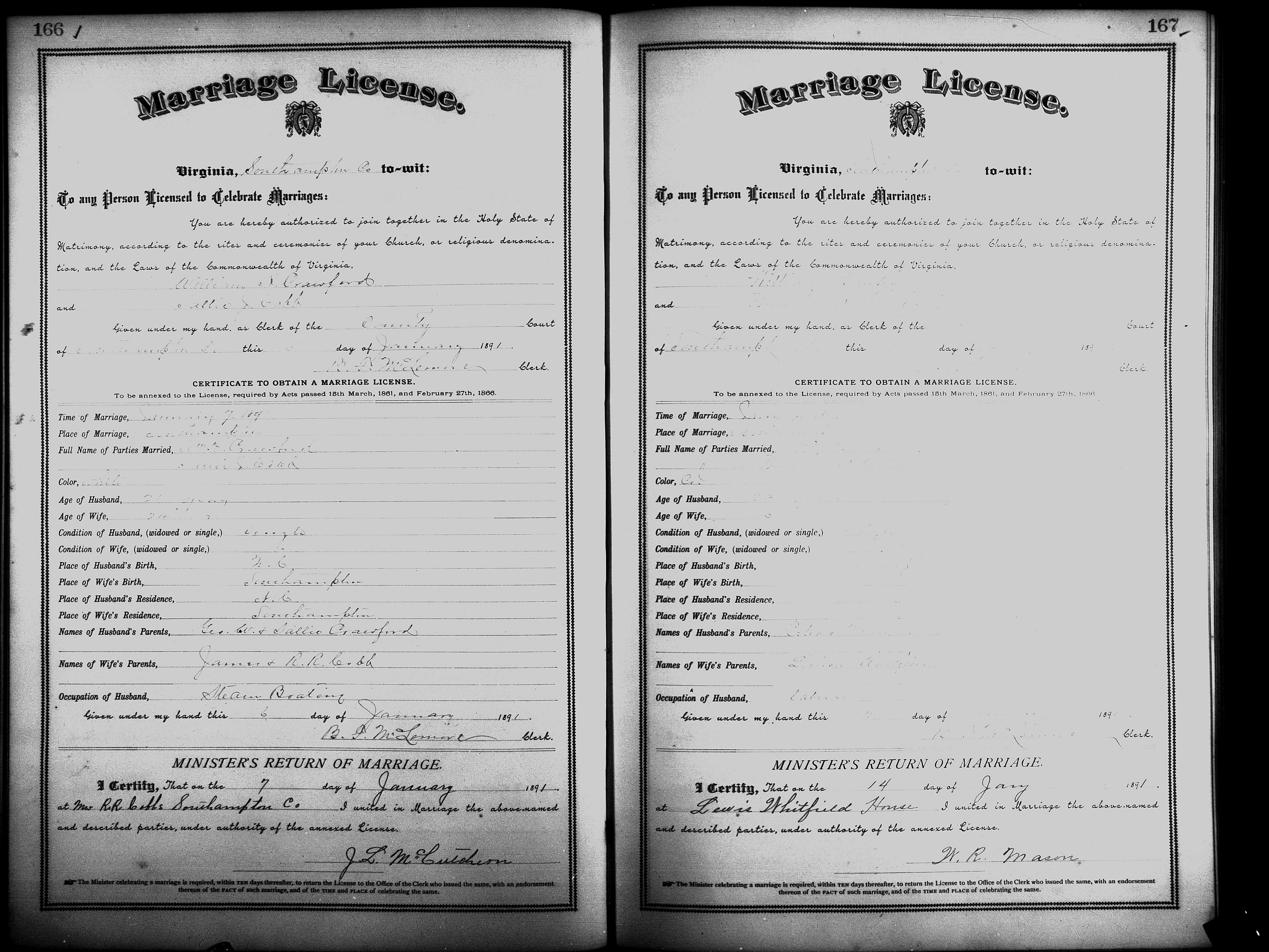 Showing /Marriage Books/Marriage Book 7 1890-1893/Pg 166.jpg
