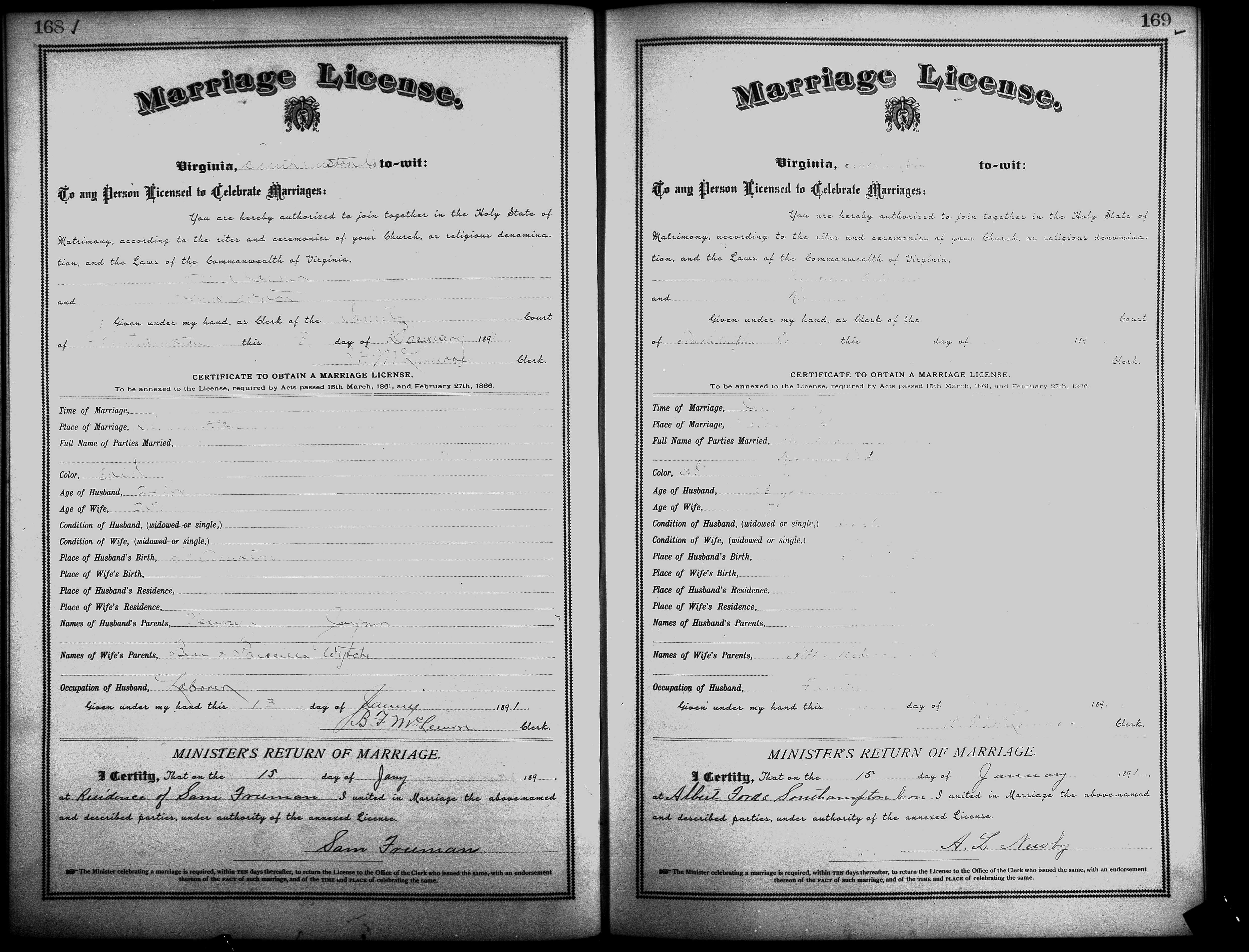 Showing /Marriage Books/Marriage Book 7 1890-1893/Pg 169.jpg
