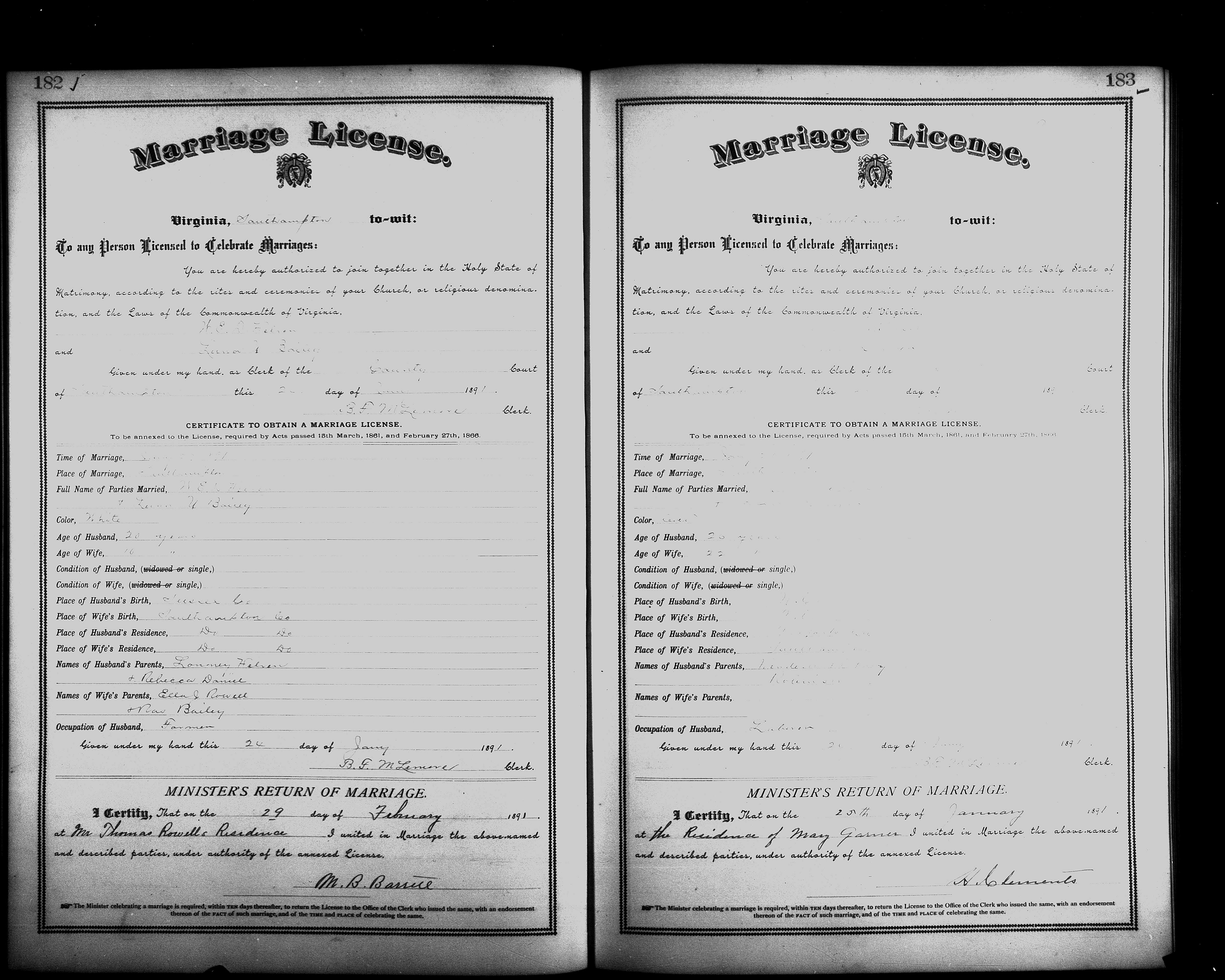 Showing /Marriage Books/Marriage Book 7 1890-1893/Pg 182.jpg