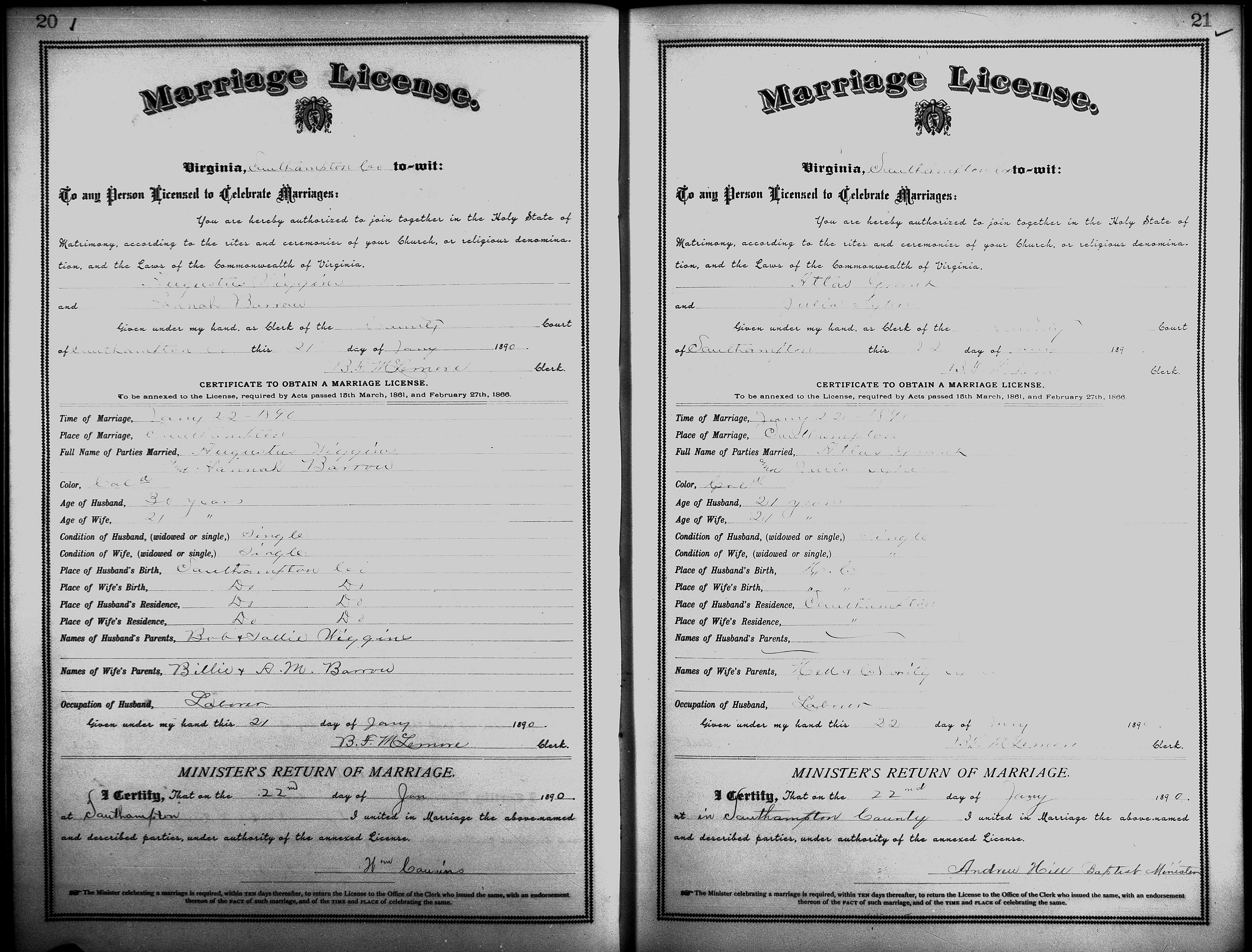 Showing /Marriage Books/Marriage Book 7 1890-1893/Pg 020.jpg