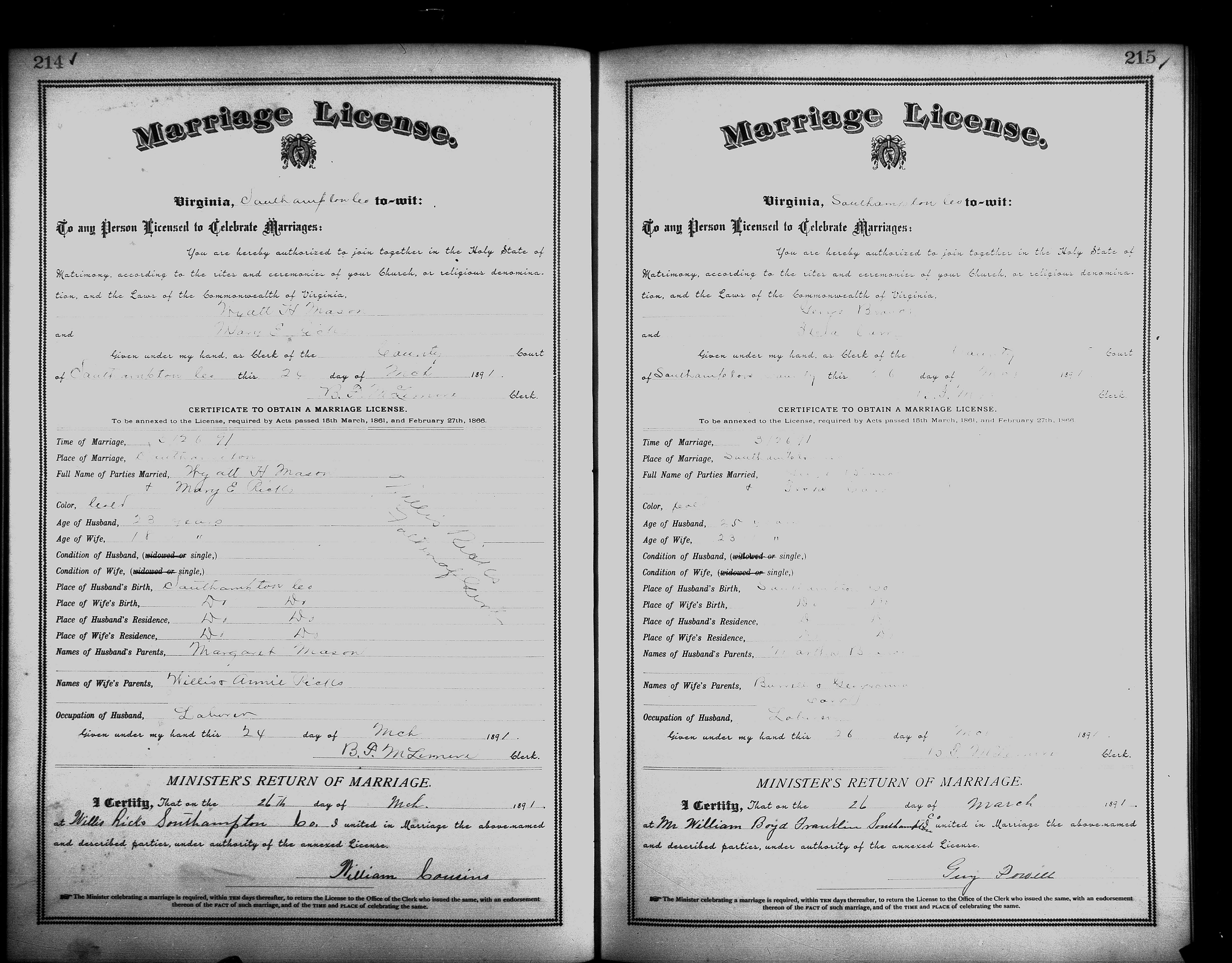 Showing /Marriage Books/Marriage Book 7 1890-1893/Pg 215.jpg