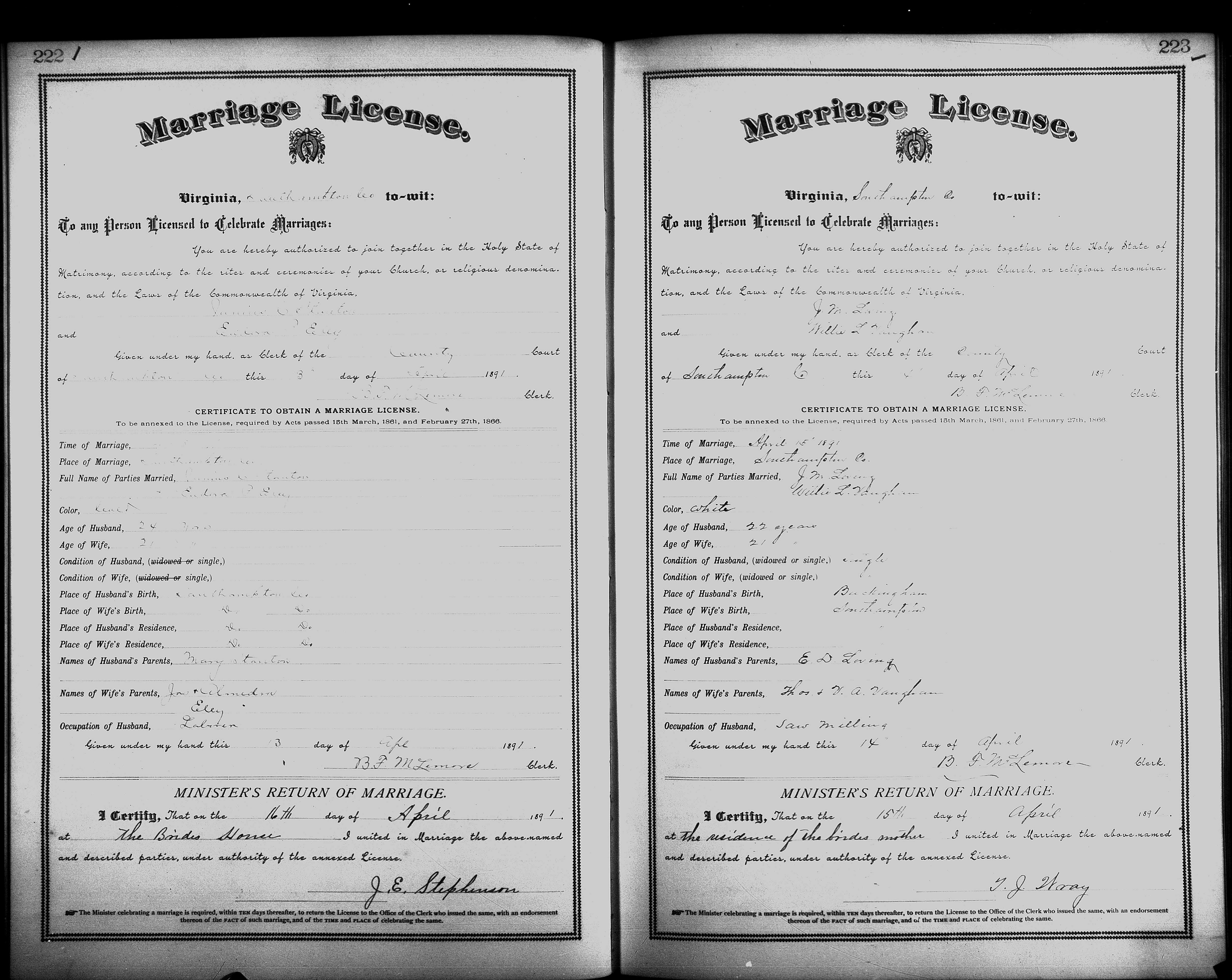 Showing /Marriage Books/Marriage Book 7 1890-1893/Pg 222.jpg