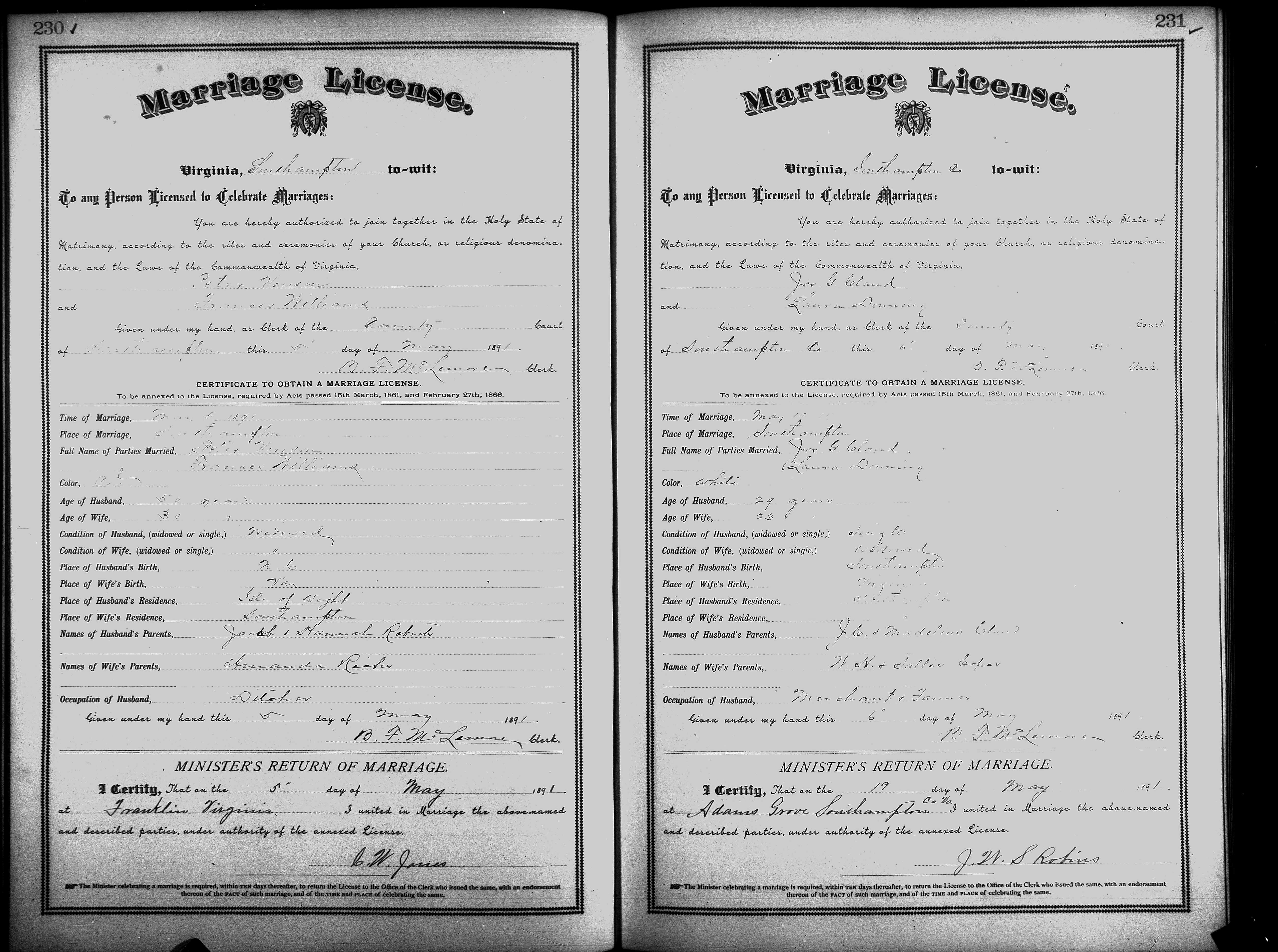 Showing /Marriage Books/Marriage Book 7 1890-1893/Pg 230.jpg