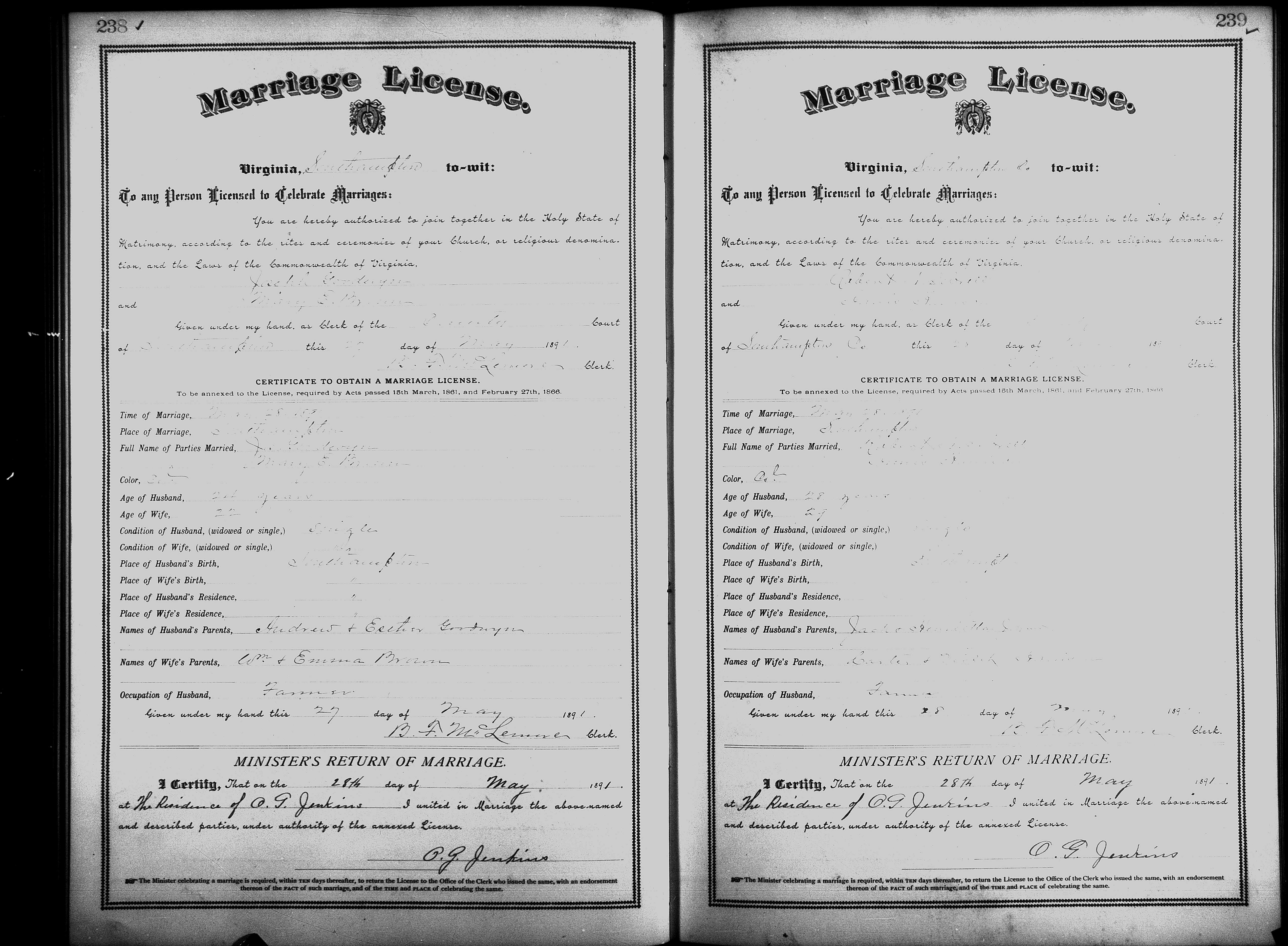 Showing /Marriage Books/Marriage Book 7 1890-1893/Pg 238.jpg
