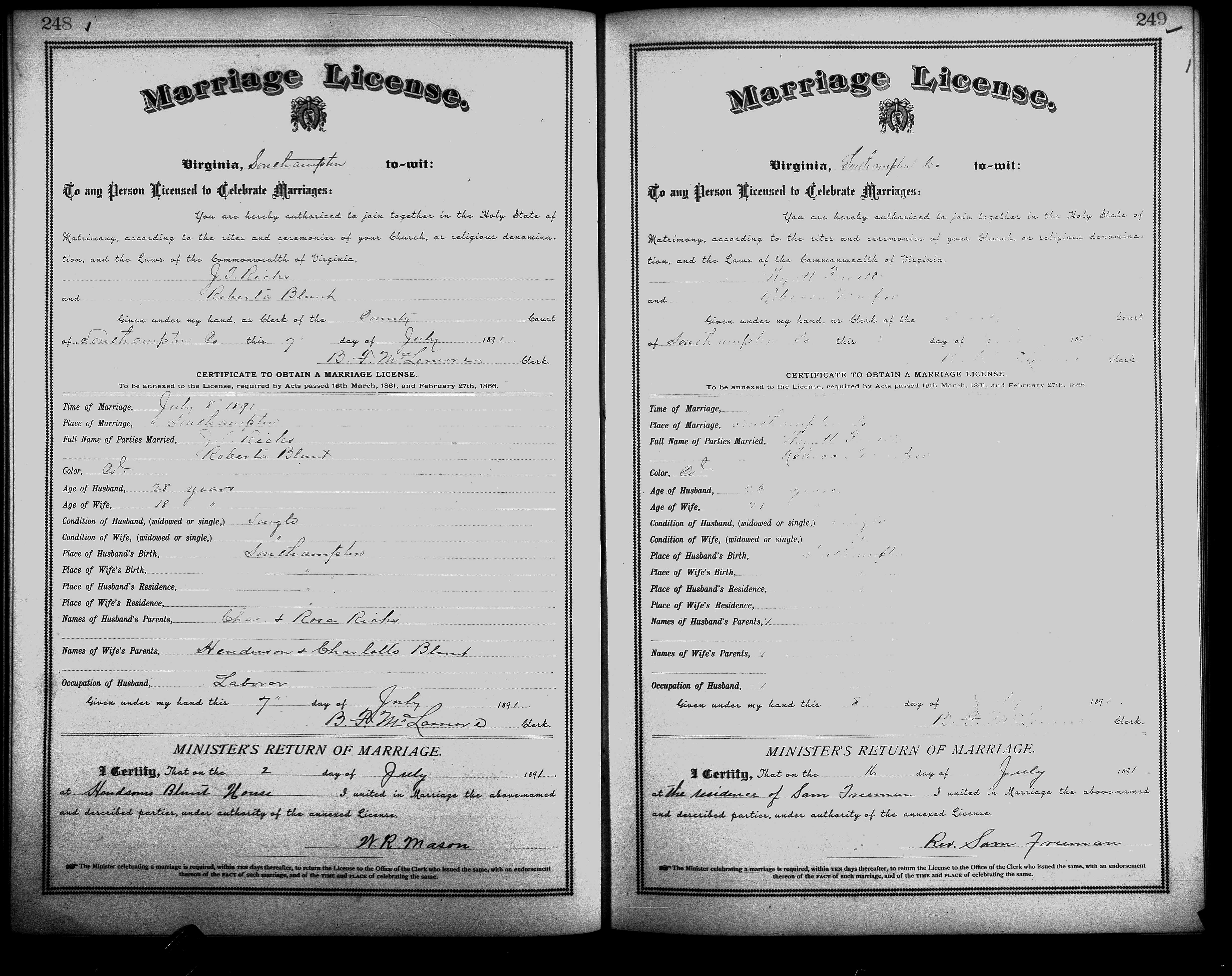 Showing /Marriage Books/Marriage Book 7 1890-1893/Pg 249.jpg