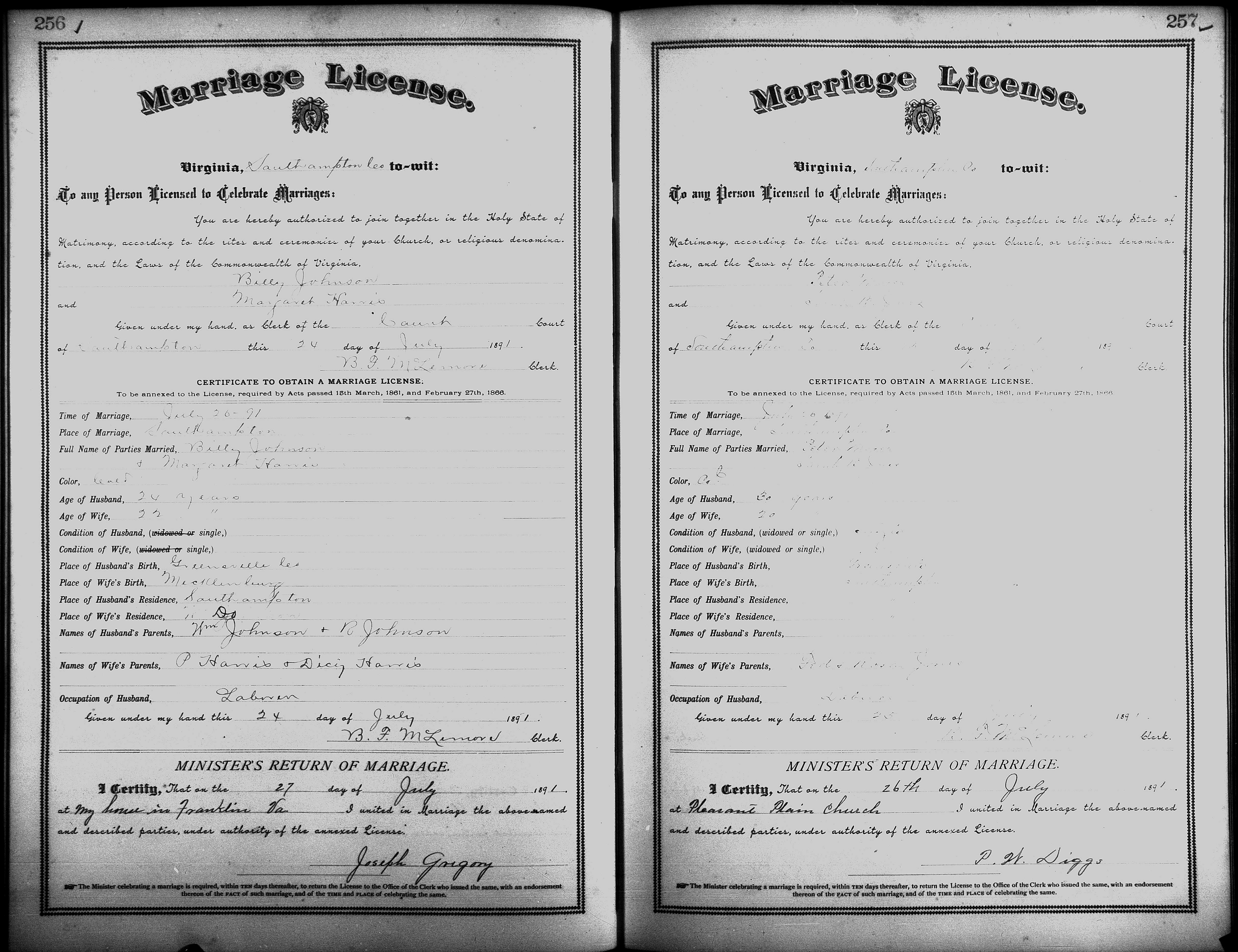 Showing /Marriage Books/Marriage Book 7 1890-1893/Pg 257.jpg