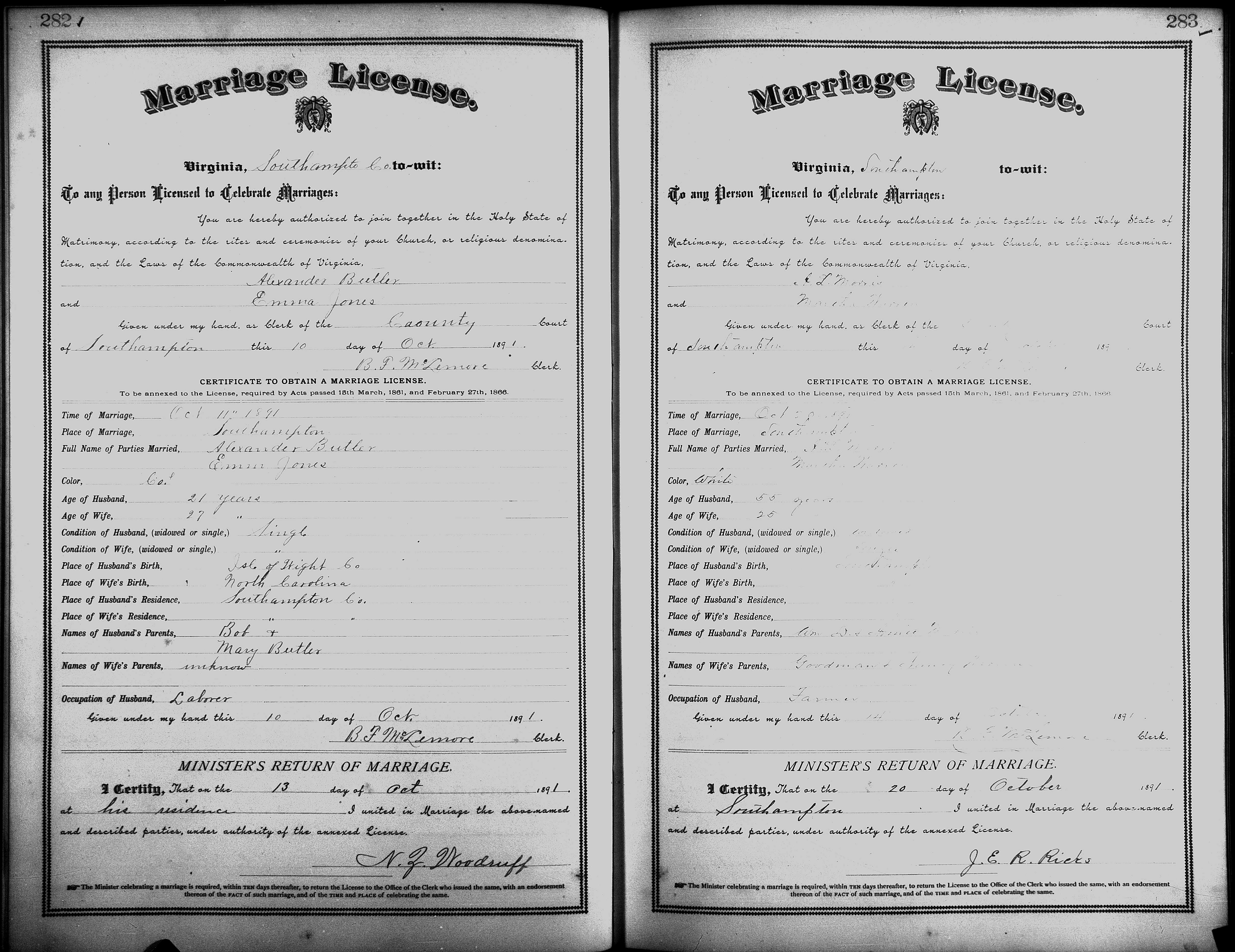Showing /Marriage Books/Marriage Book 7 1890-1893/Pg 282.jpg