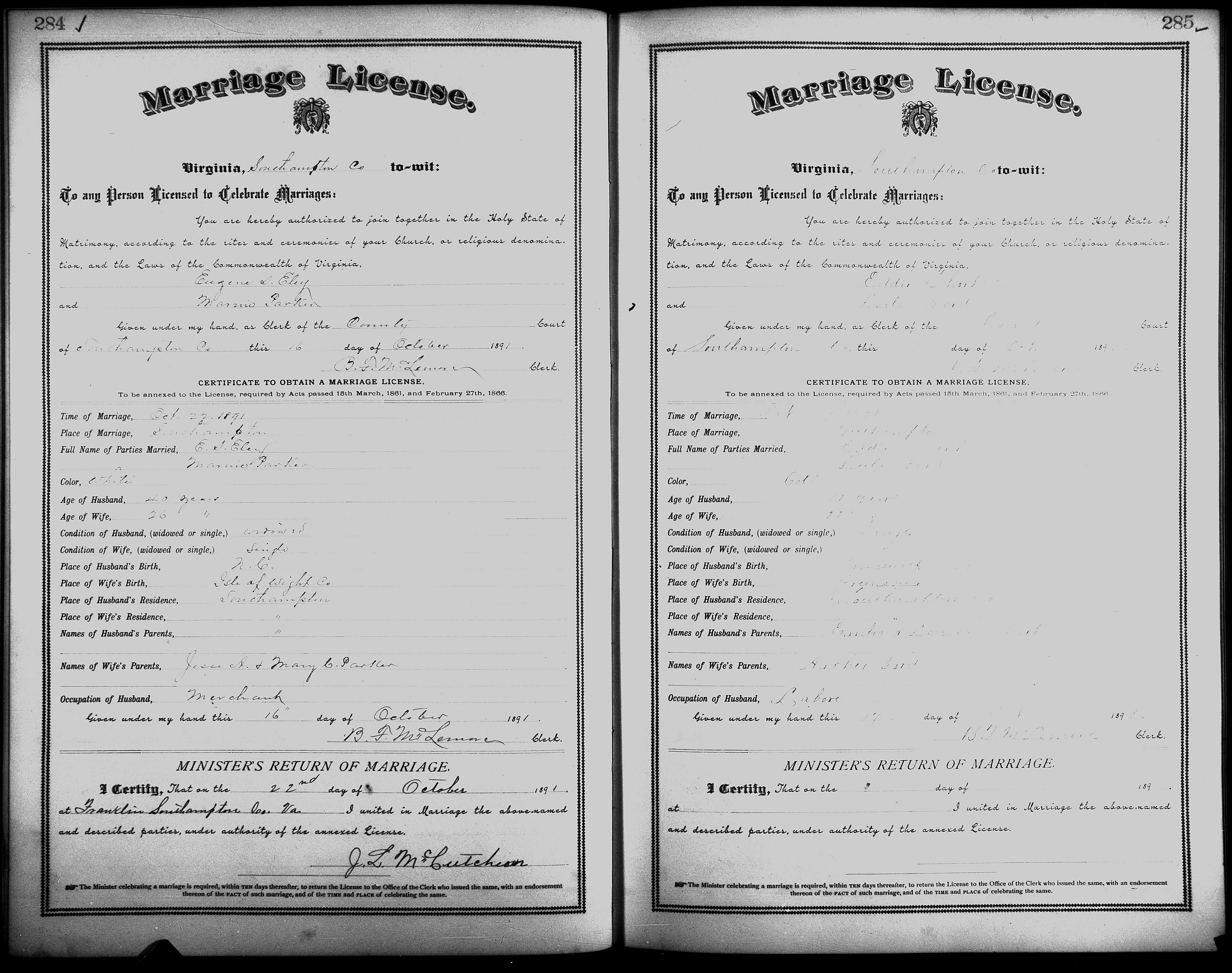 Showing /Marriage Books/Marriage Book 7 1890-1893/Pg 285.jpg