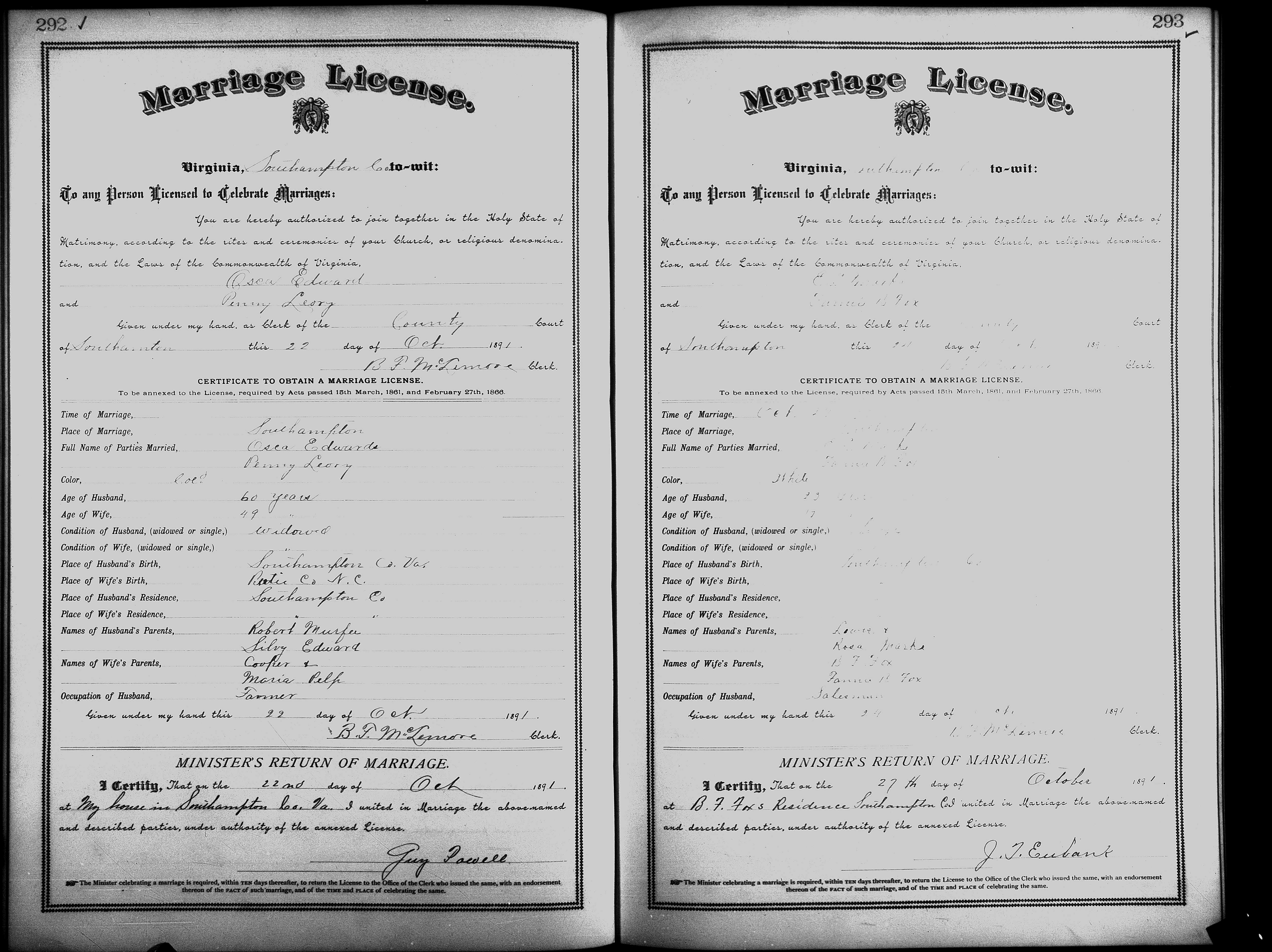 Showing /Marriage Books/Marriage Book 7 1890-1893/Pg 292.jpg
