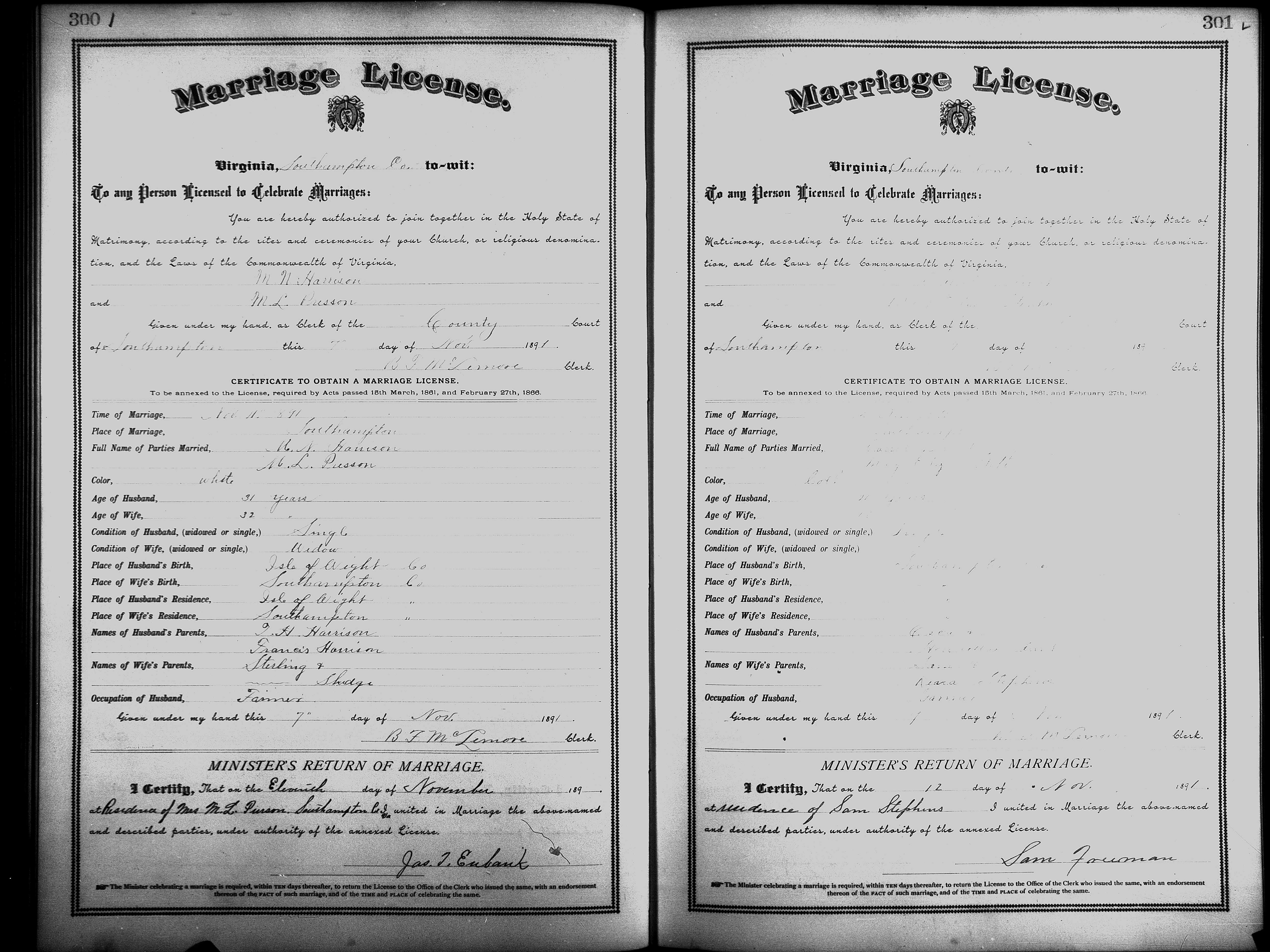 Showing /Marriage Books/Marriage Book 7 1890-1893/Pg 301.jpg