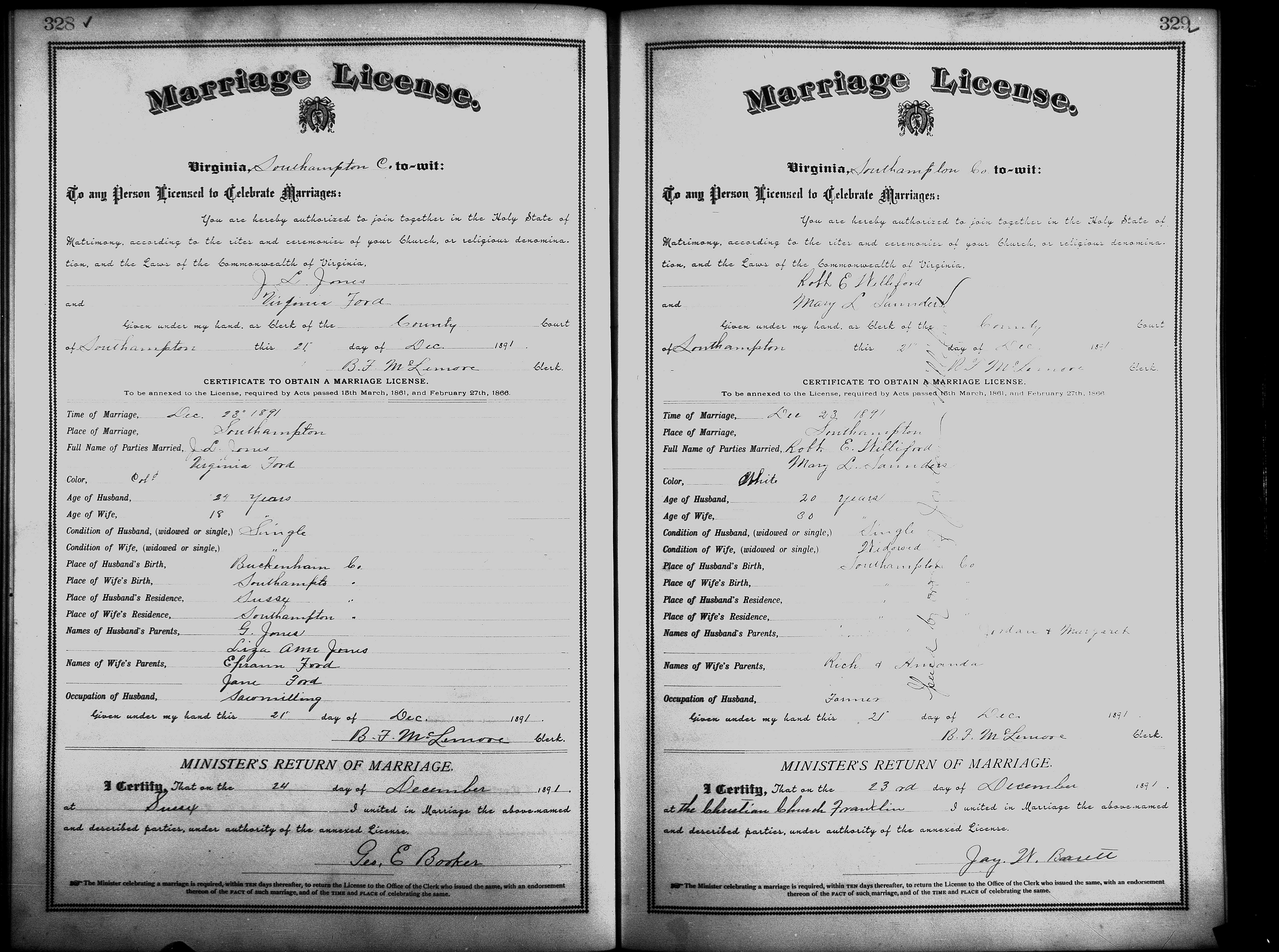 Showing /Marriage Books/Marriage Book 7 1890-1893/Pg 328.jpg
