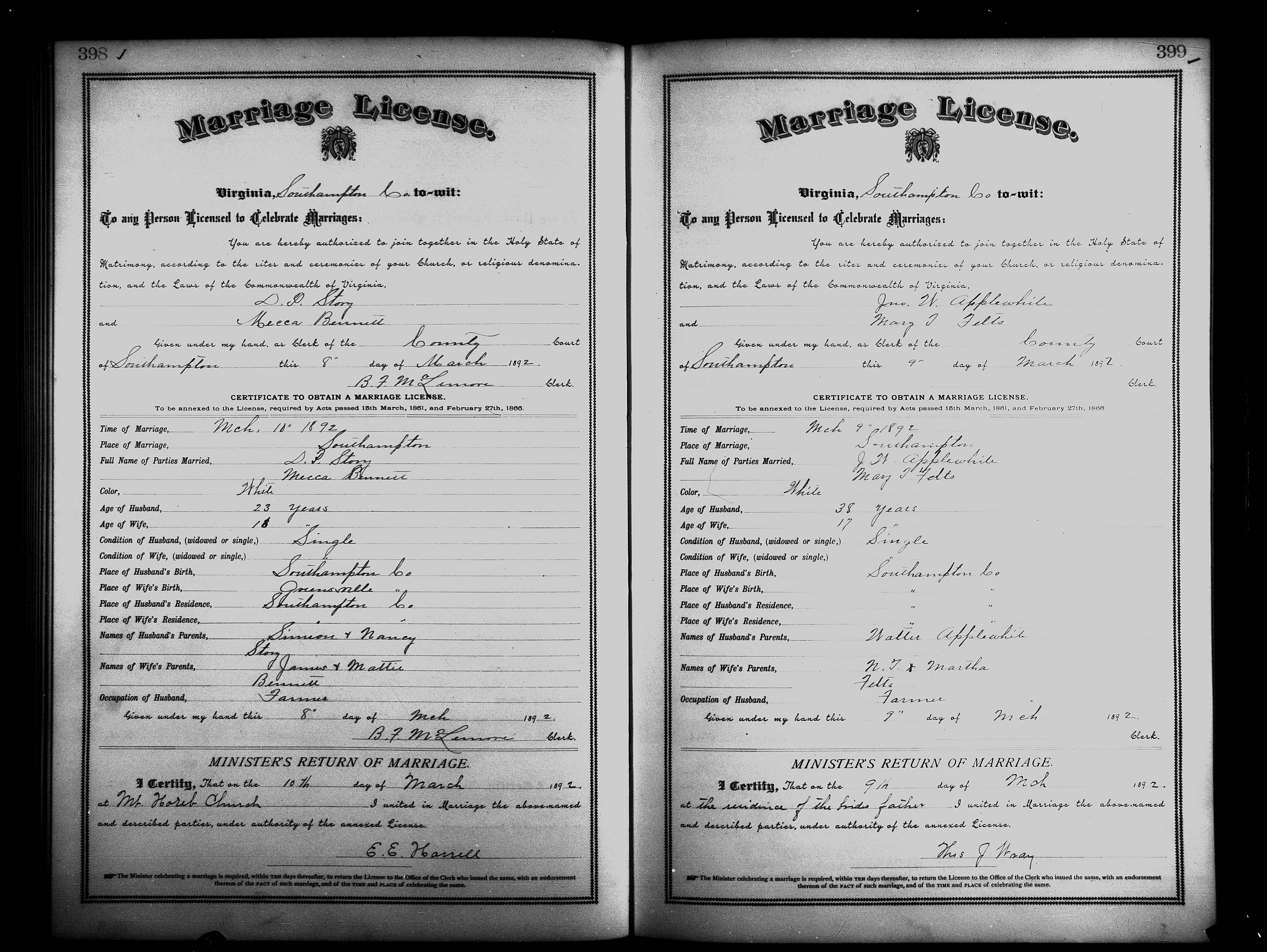 Showing /Marriage Books/Marriage Book 7 1890-1893/Pg 399.jpg