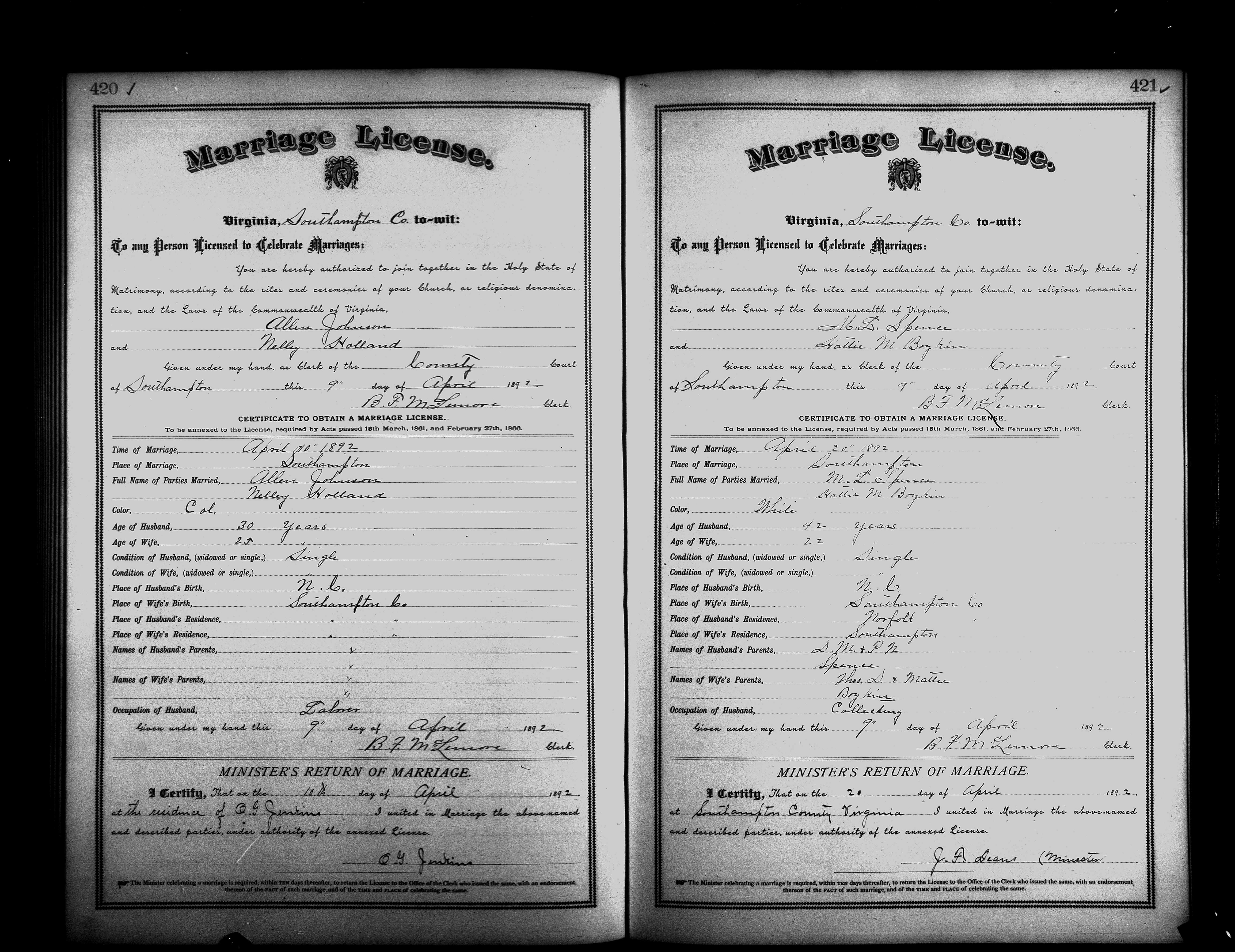 Showing /Marriage Books/Marriage Book 7 1890-1893/Pg 421.jpg