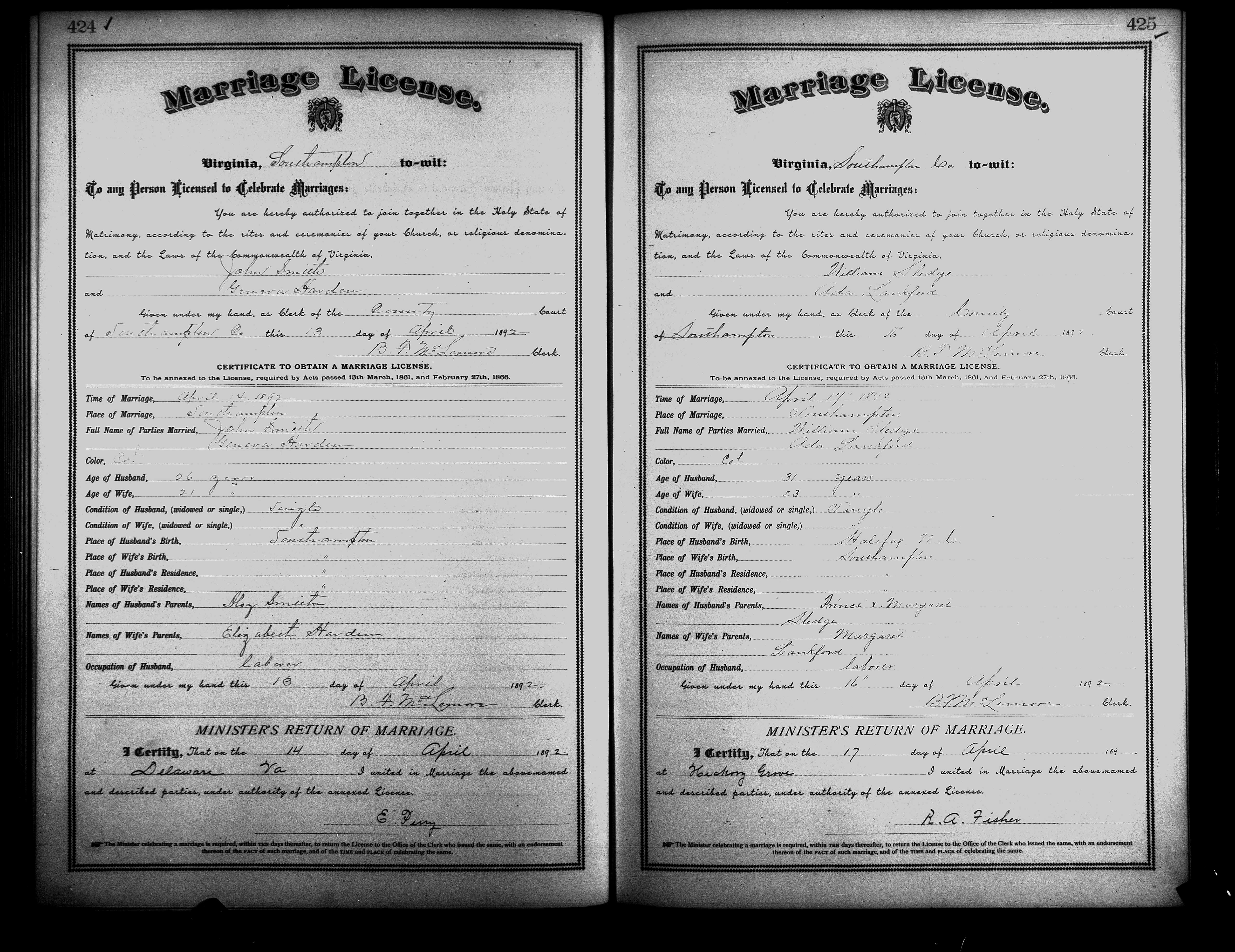 Showing /Marriage Books/Marriage Book 7 1890-1893/Pg 424.jpg
