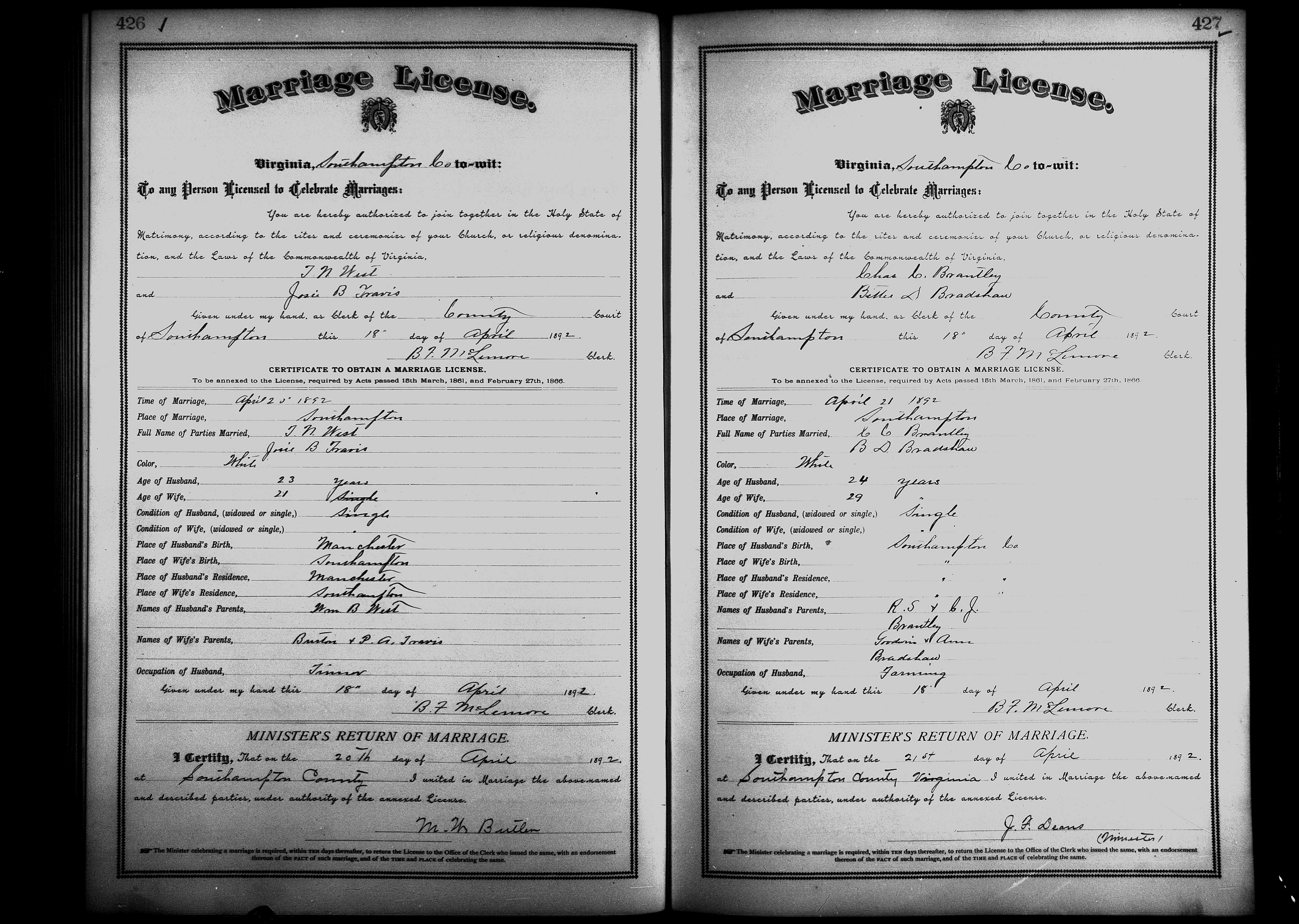 Showing /Marriage Books/Marriage Book 7 1890-1893/Pg 426.jpg