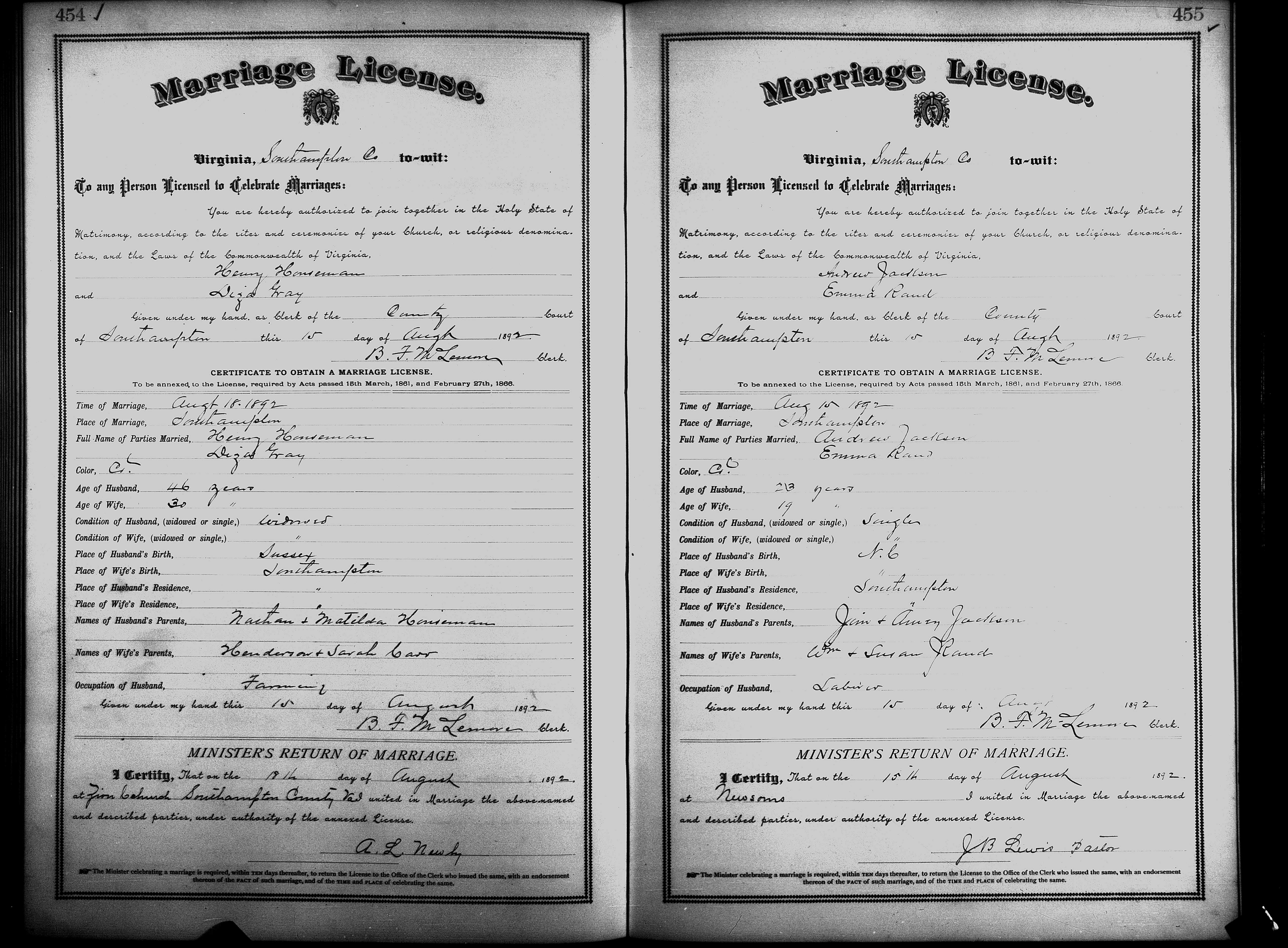 Showing /Marriage Books/Marriage Book 7 1890-1893/Pg 455.jpg