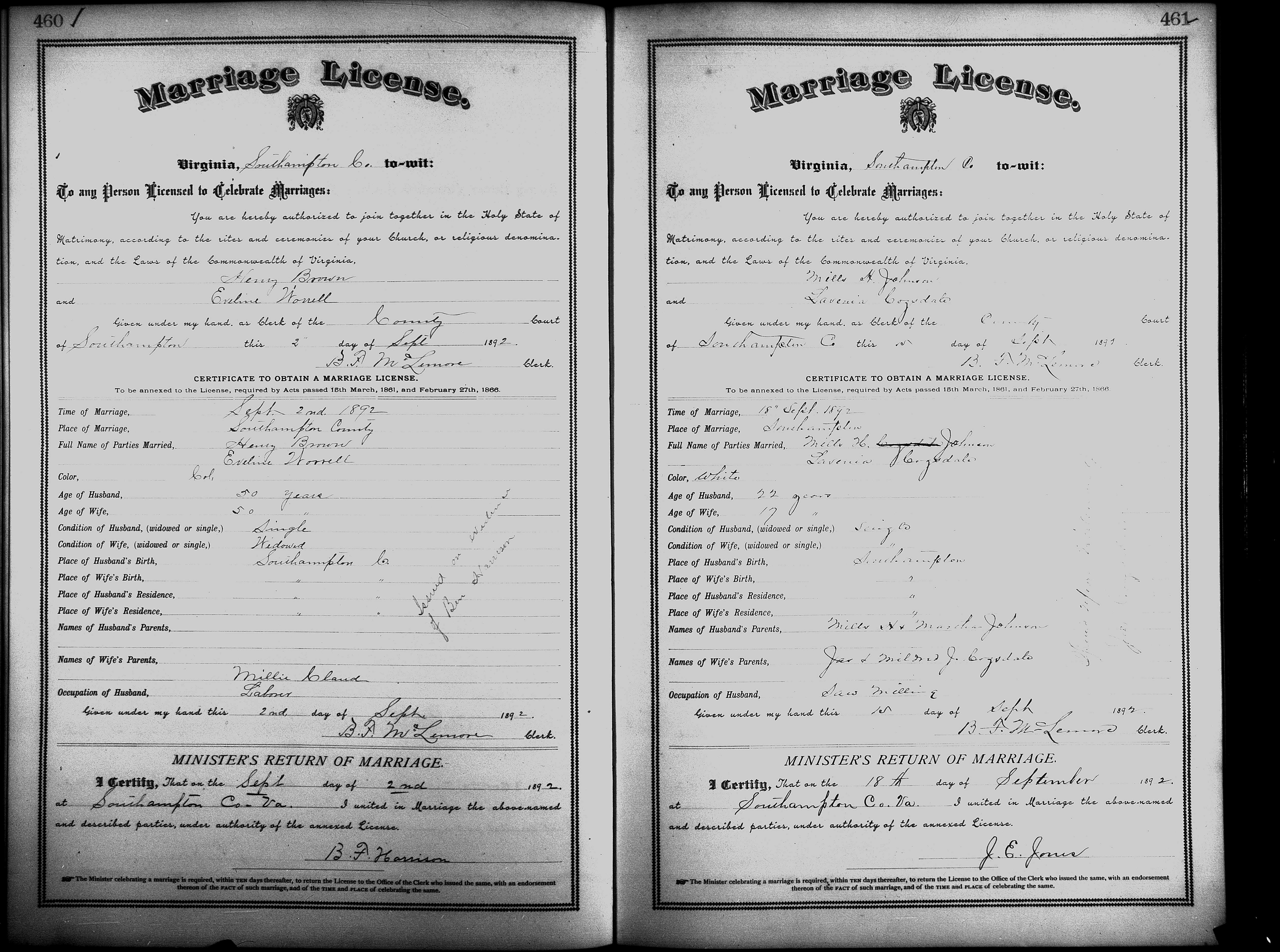 Showing /Marriage Books/Marriage Book 7 1890-1893/Pg 460.jpg