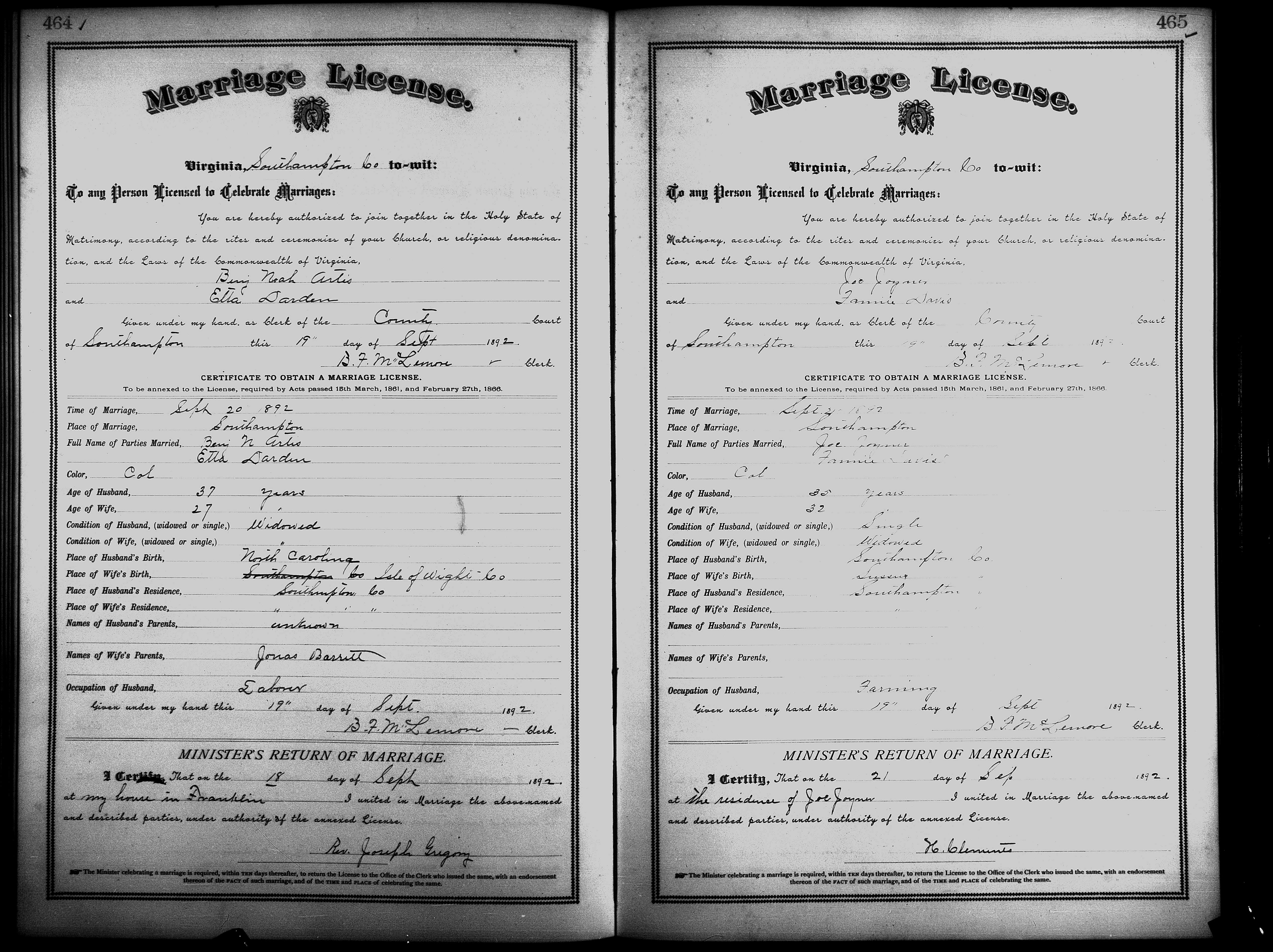 Showing /Marriage Books/Marriage Book 7 1890-1893/Pg 465.jpg