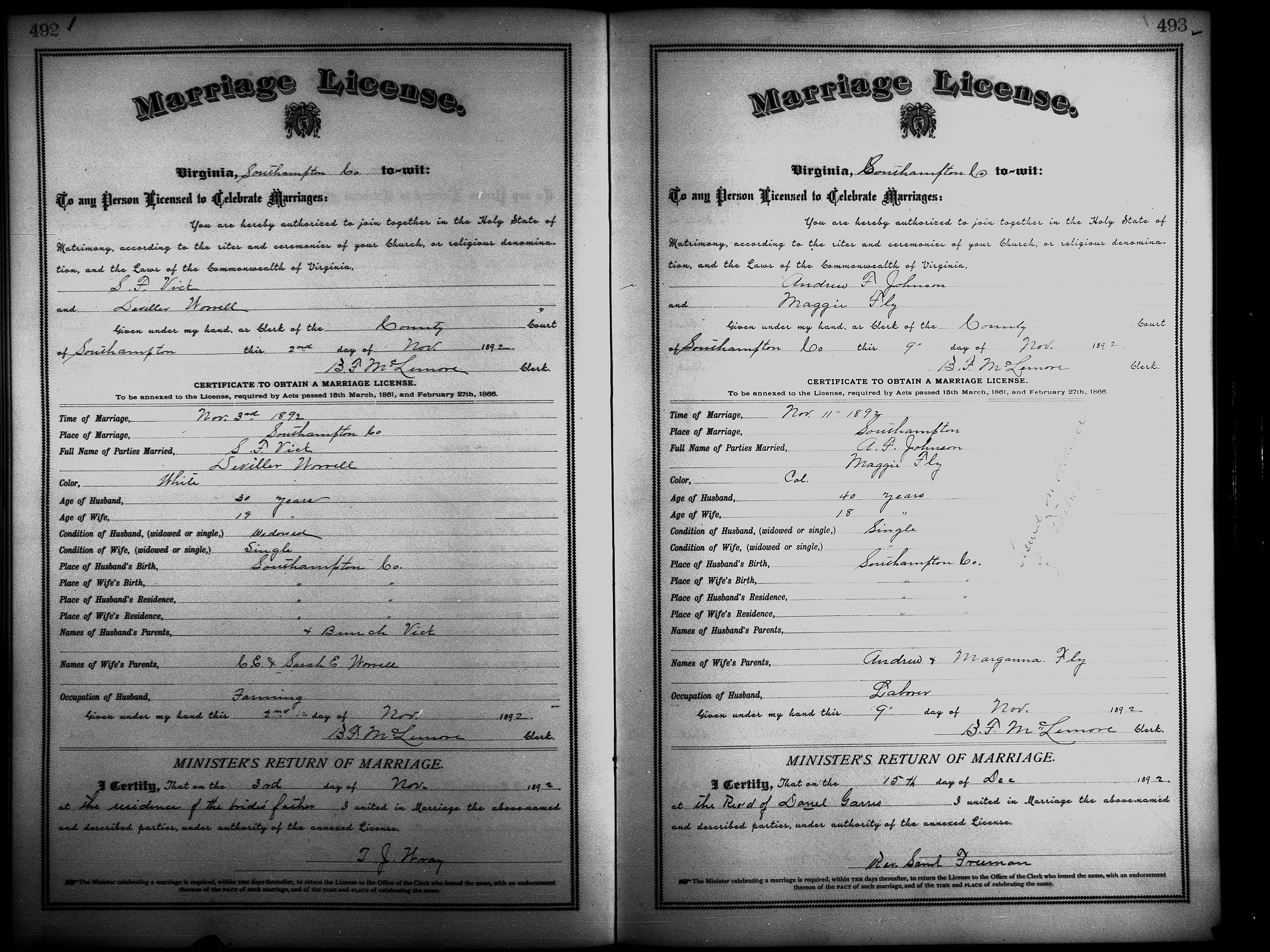 Showing /Marriage Books/Marriage Book 7 1890-1893/Pg 493.jpg