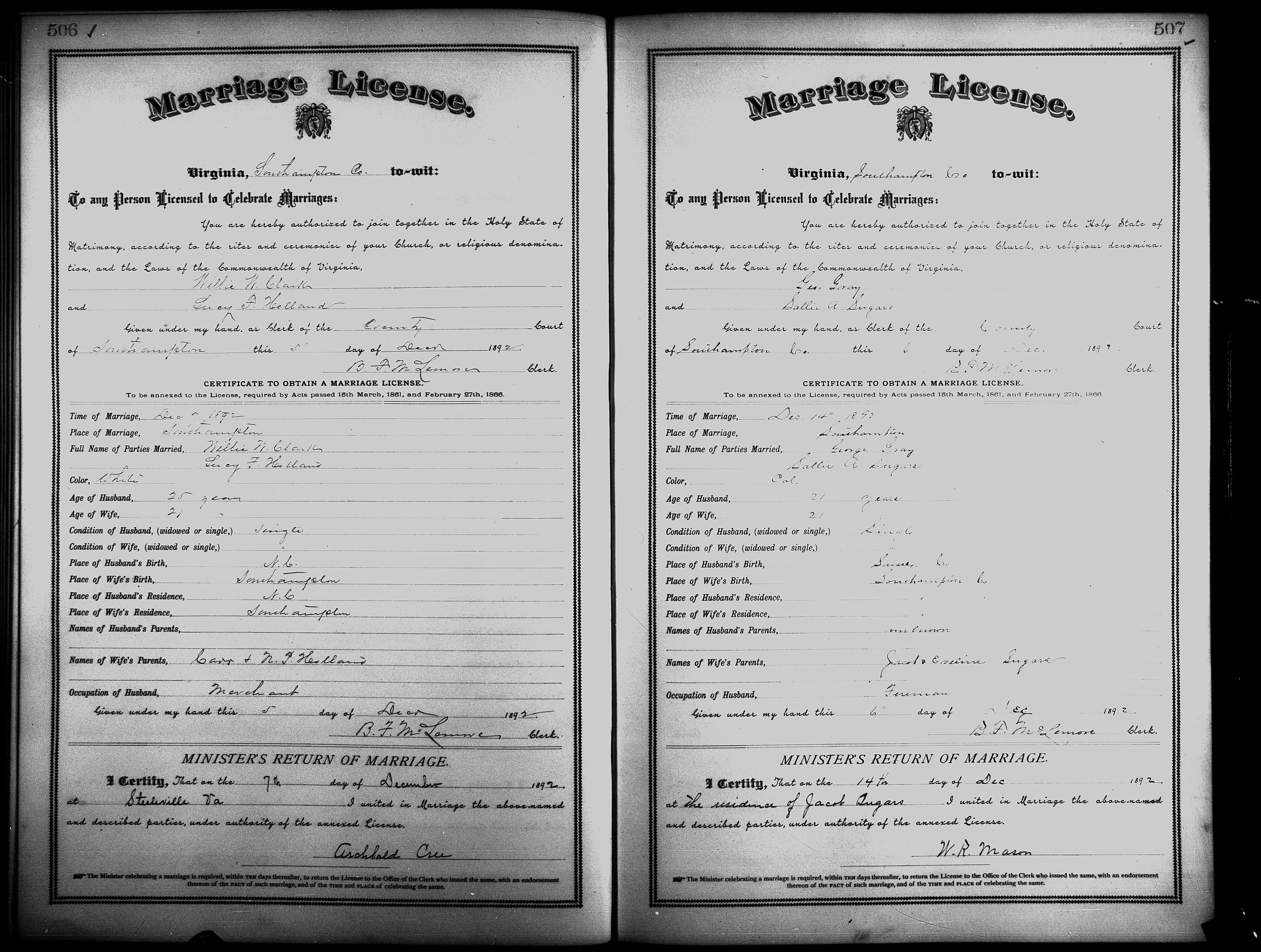 Showing /Marriage Books/Marriage Book 7 1890-1893/Pg 507.jpg