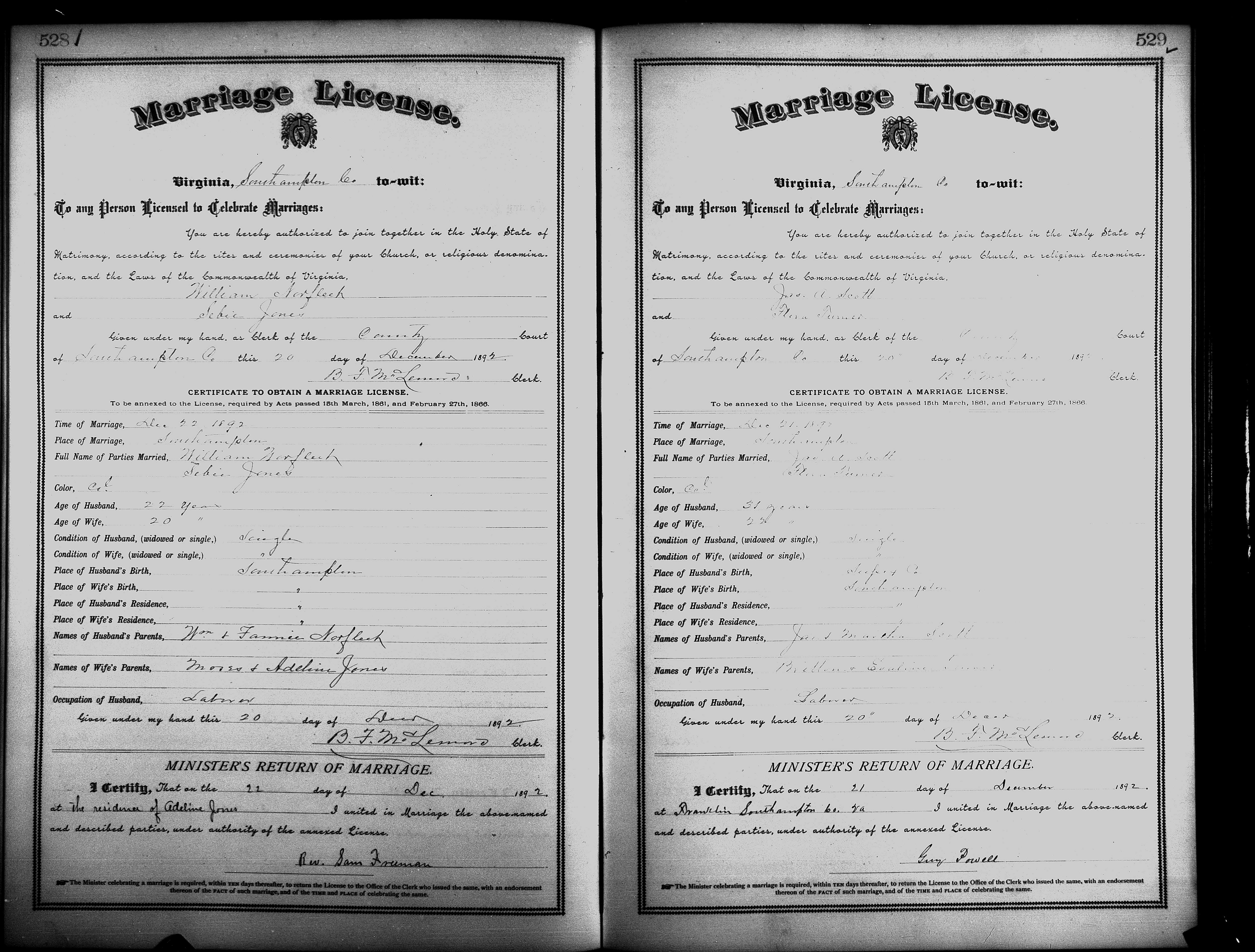 Showing /Marriage Books/Marriage Book 7 1890-1893/Pg 529.jpg