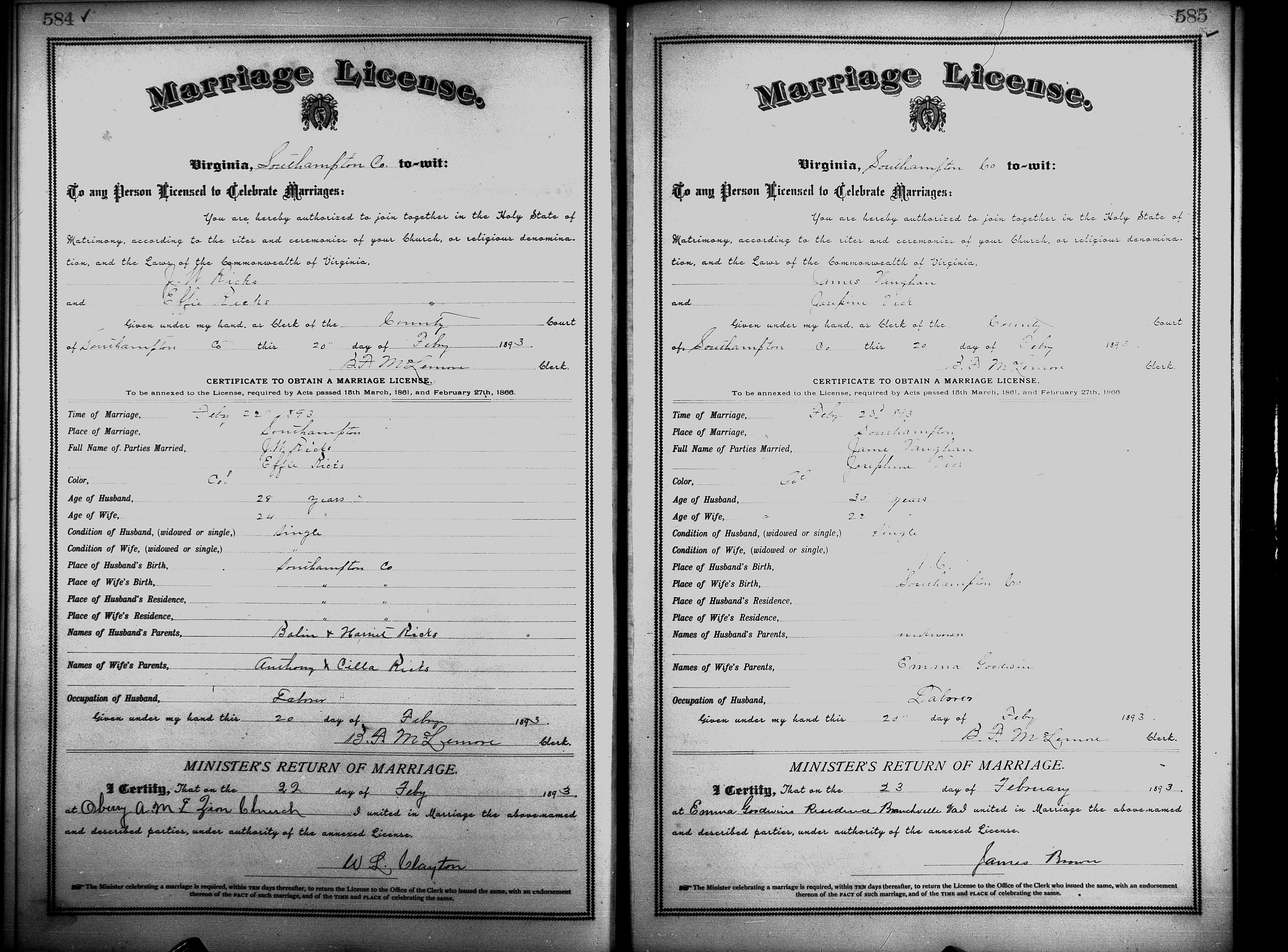 Showing /Marriage Books/Marriage Book 7 1890-1893/Pg 584.jpg