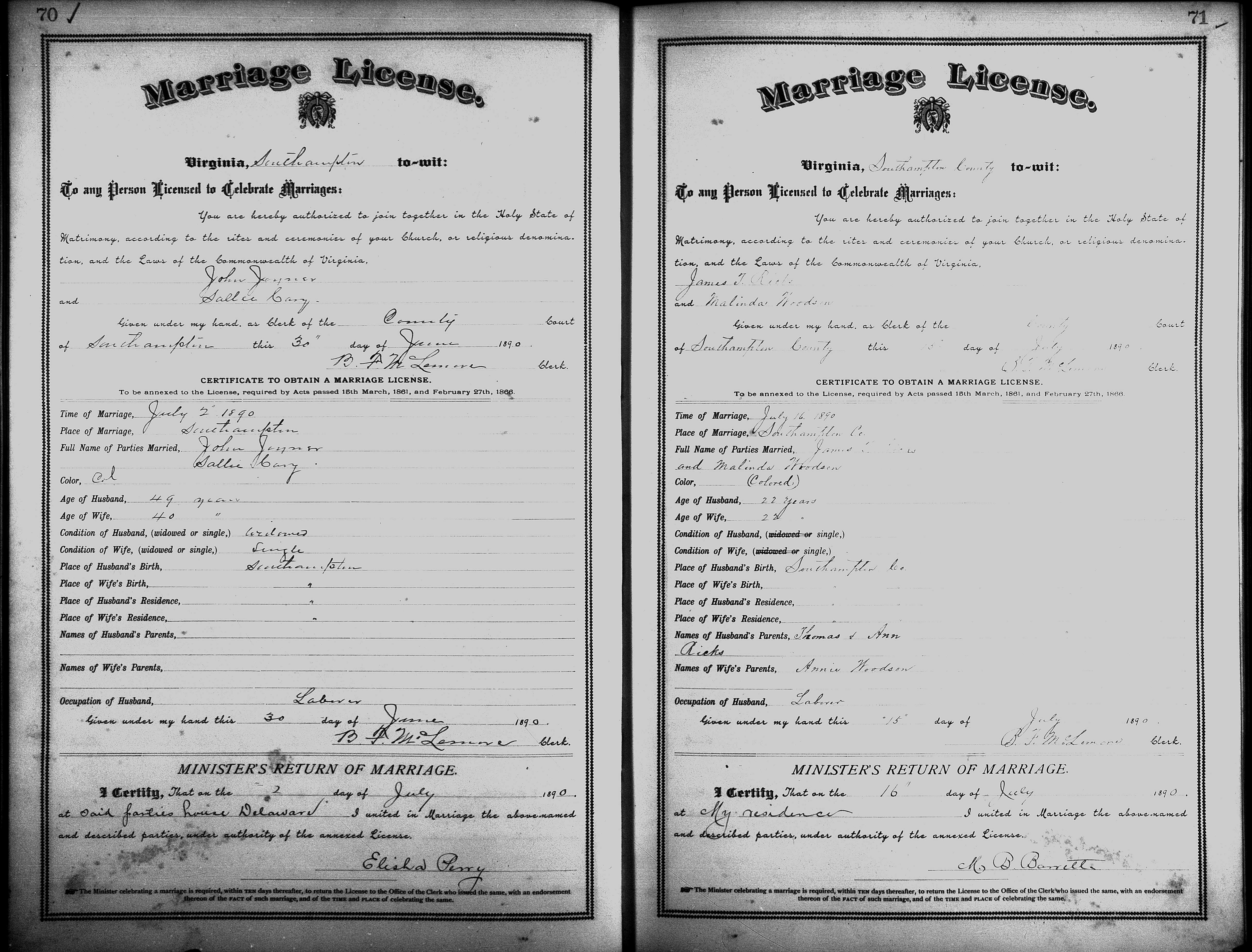 Showing /Marriage Books/Marriage Book 7 1890-1893/Pg 070.jpg