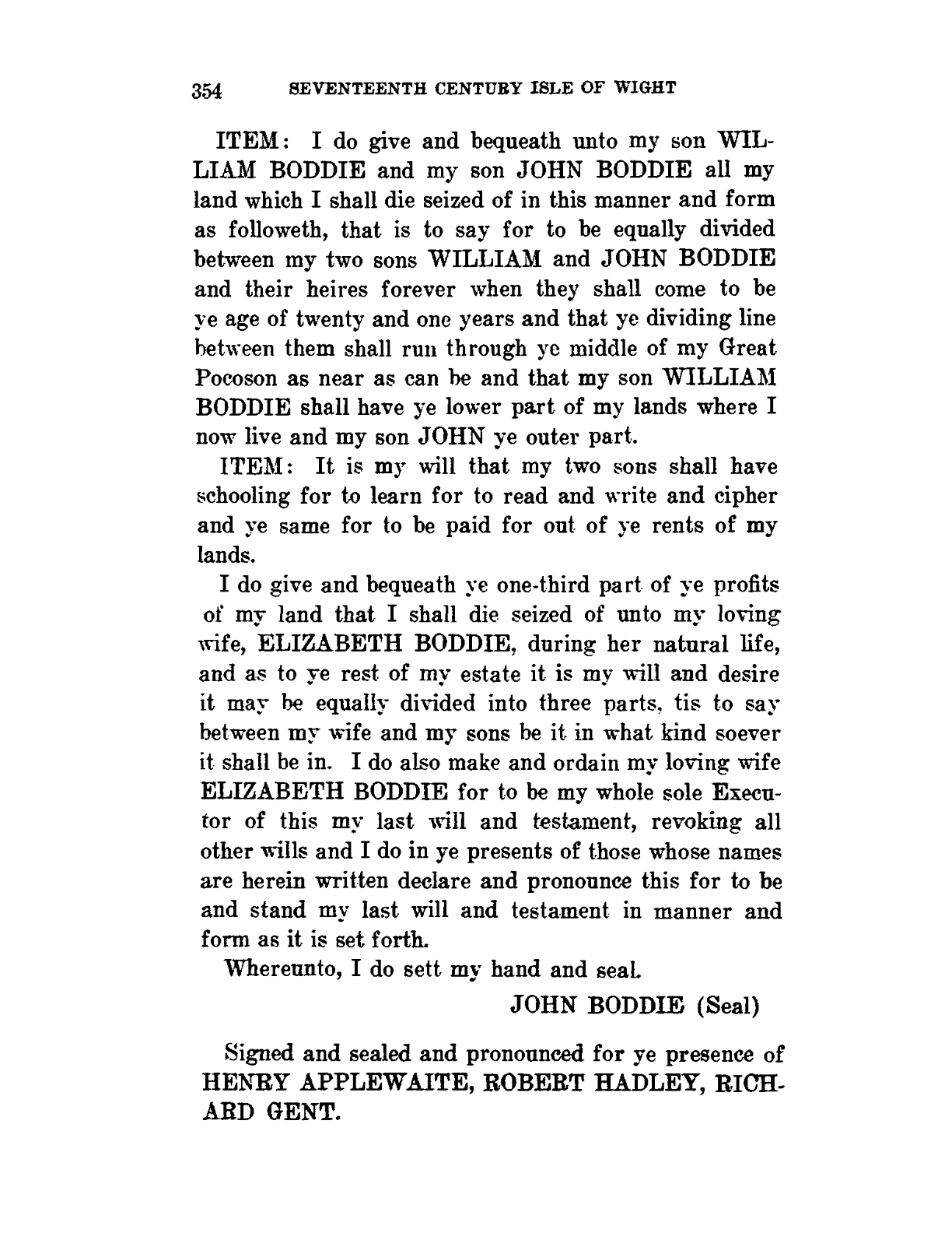 Showing /references/17th Century Isle of Wight County Virginia/Pg 354.jpg