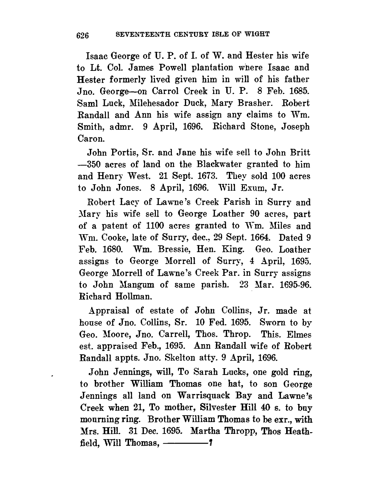 Showing /references/17th Century Isle of Wight County Virginia/Pg 626.jpg